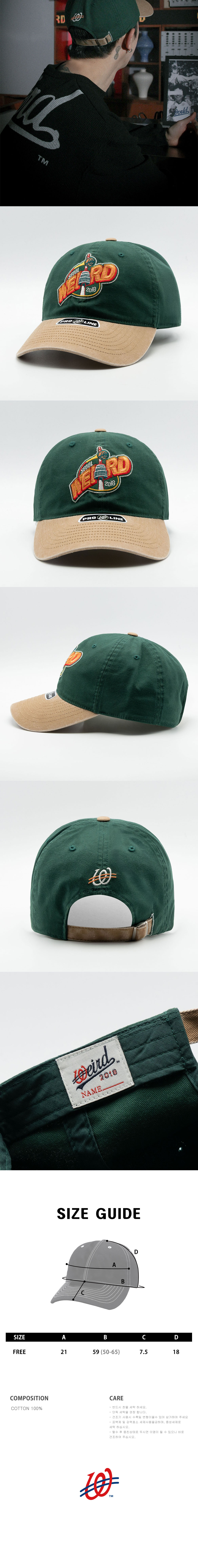 위얼드월드 위얼드 타워 피그먼트 배색 볼캡 그린