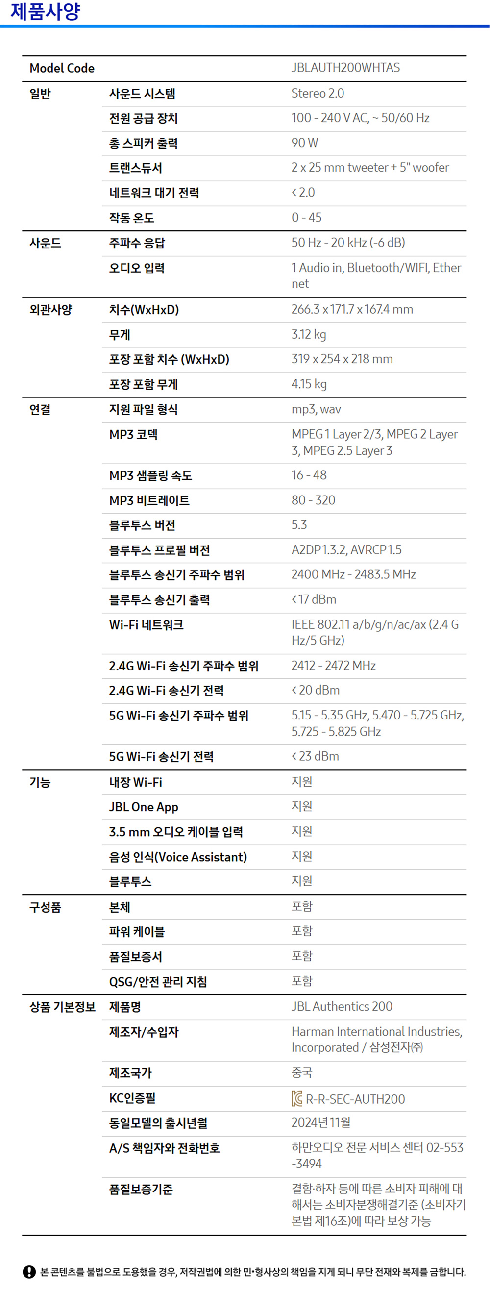 삼성공식파트너 JBL AUTHENTICS 200 블루투스 스피커 화이트