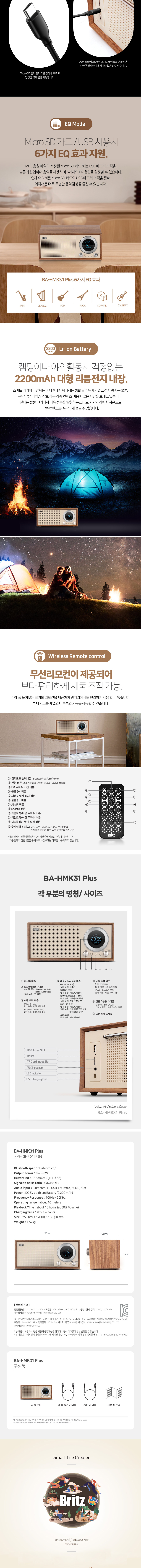 브리츠 16W FM 라디오 블루투스 스피커 BA-HMK31 Plus