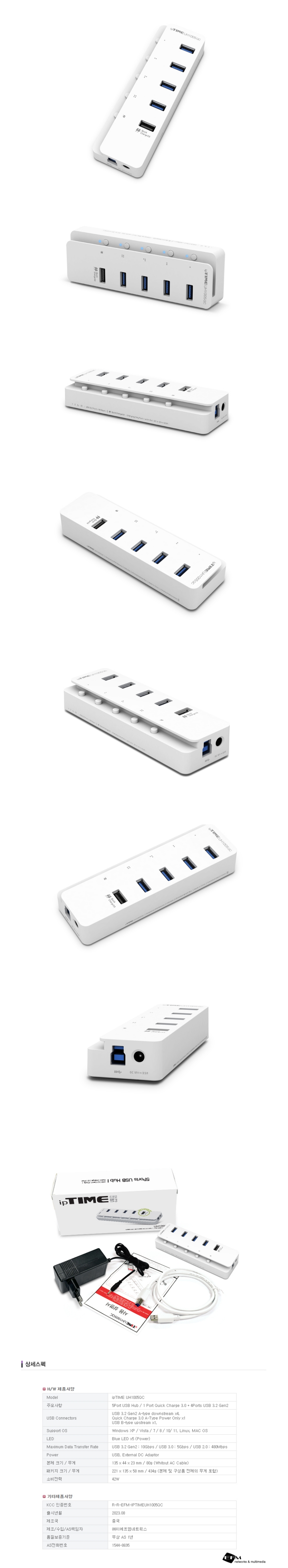 ipTIME UH1005QC 5포트 C타입 USB 3.2 USB허브