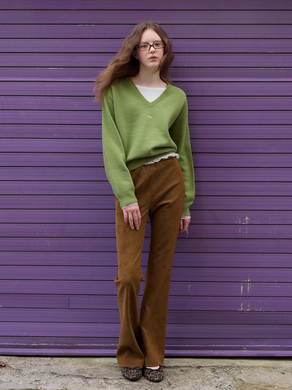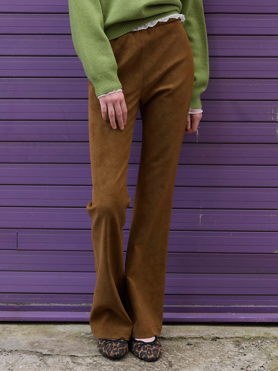 Murmure Obe Suede Banding Bootcut Pants Brown