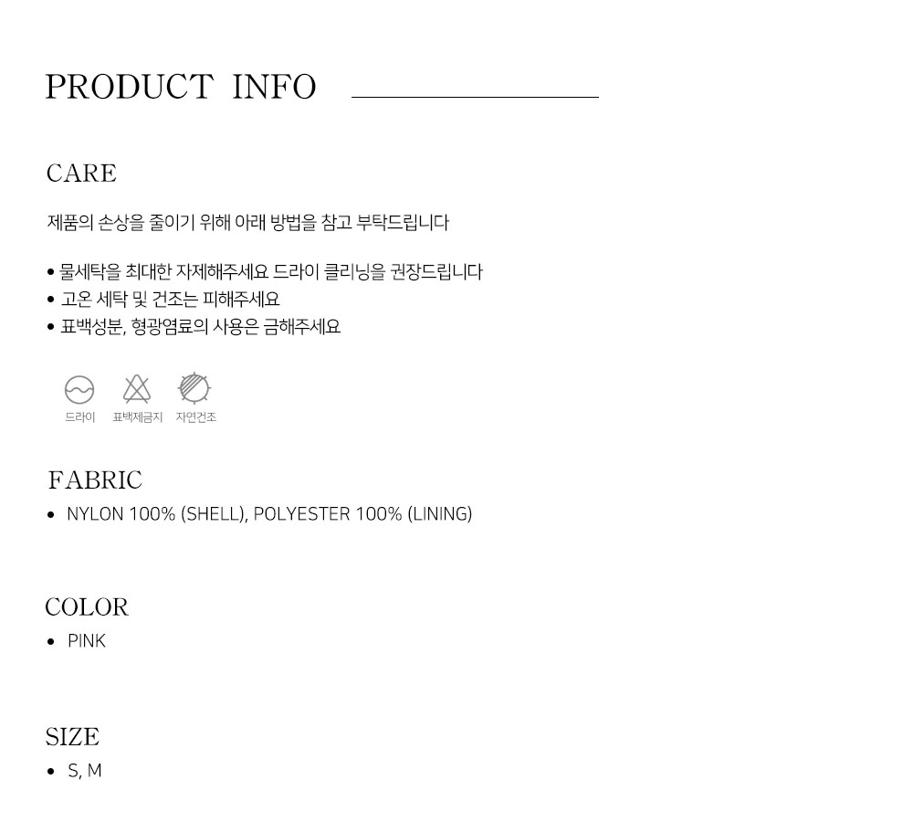 S- 총기장 41 / 허리 32.5 / 힙 46 / 밑단 50