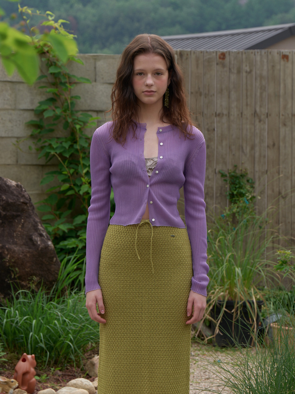 뮈르뮈르 유센 글로시 시어 니트 가디건 퍼플