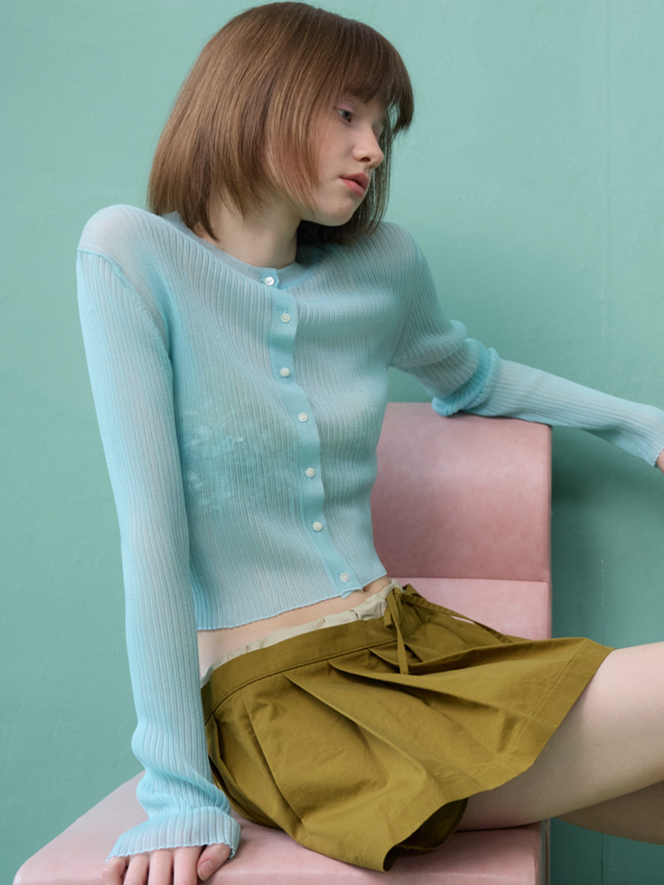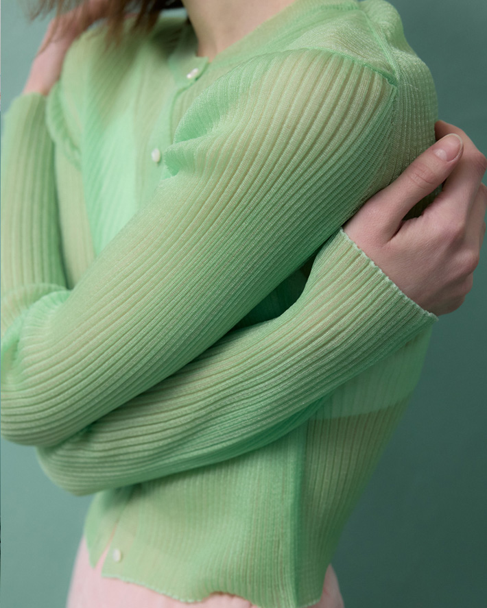 뮈르뮈르 유센 글로시 시어 니트 가디건 라이트그린
