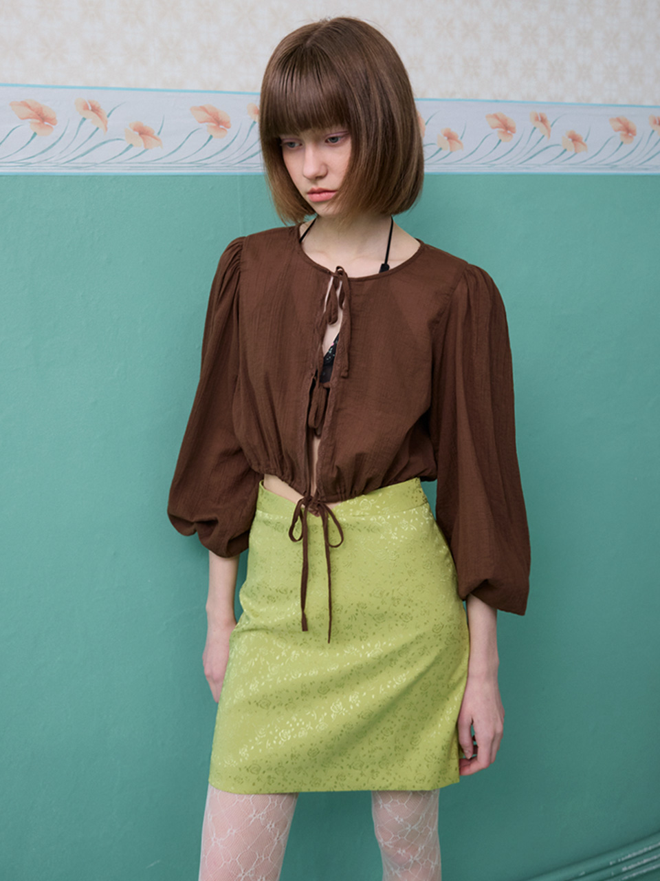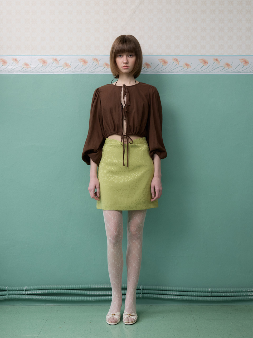 로즈 패턴이 더해진 플라워 자가드 소재로 제작된 미니 스커트입니다.