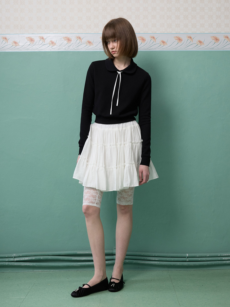 프릴 디테일은 자연스럽게 풀리는 듯한 내추럴한 마감으로 처리되어,