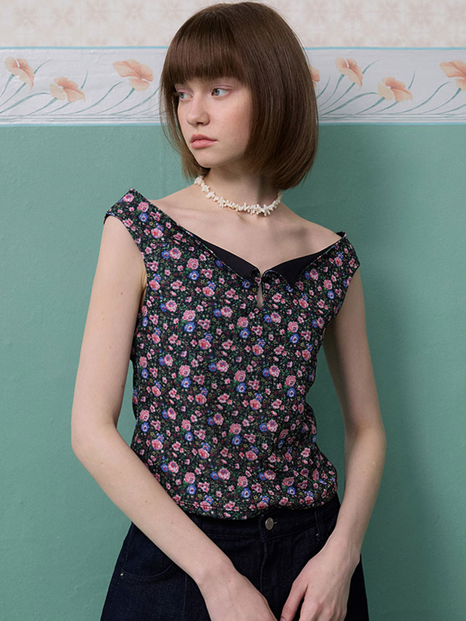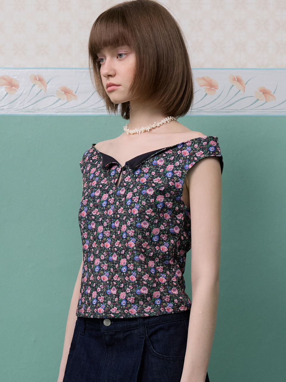 룩에 유니크한 포인트를 더해주는 오프숄더 탑입니다.