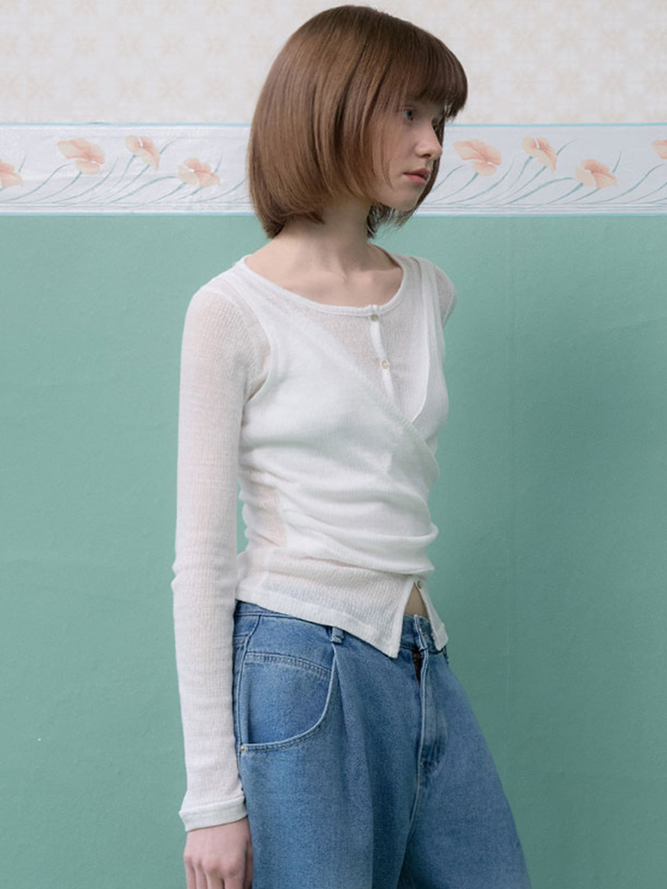 레이어드한 듯한 스타일링을 하나의 아이템으로 간편하게 연출할 수 있습니다.