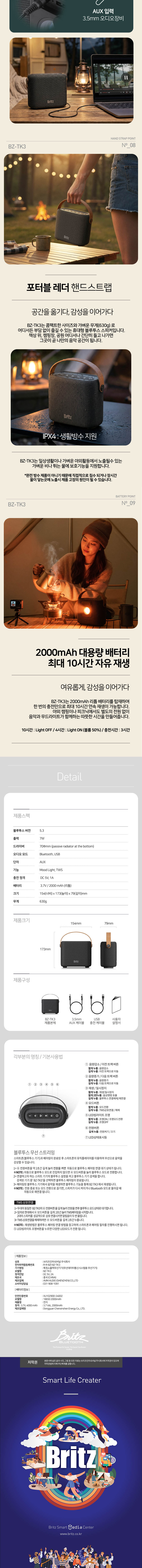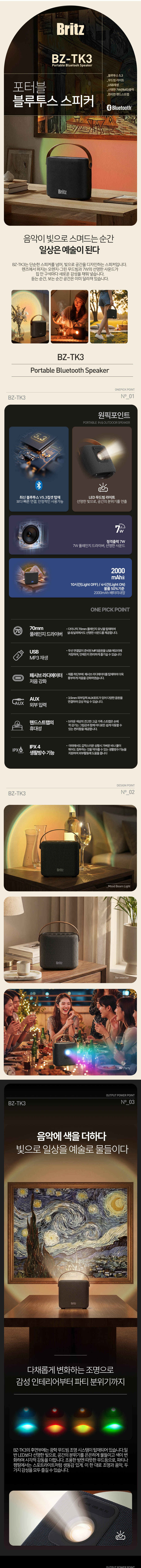 브리츠 우퍼 무드빔 휴대용 TWS 블루투스 스피커 BZ-TK3