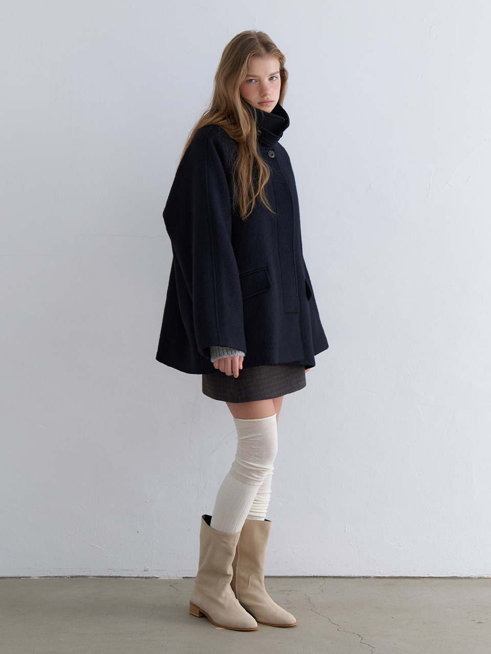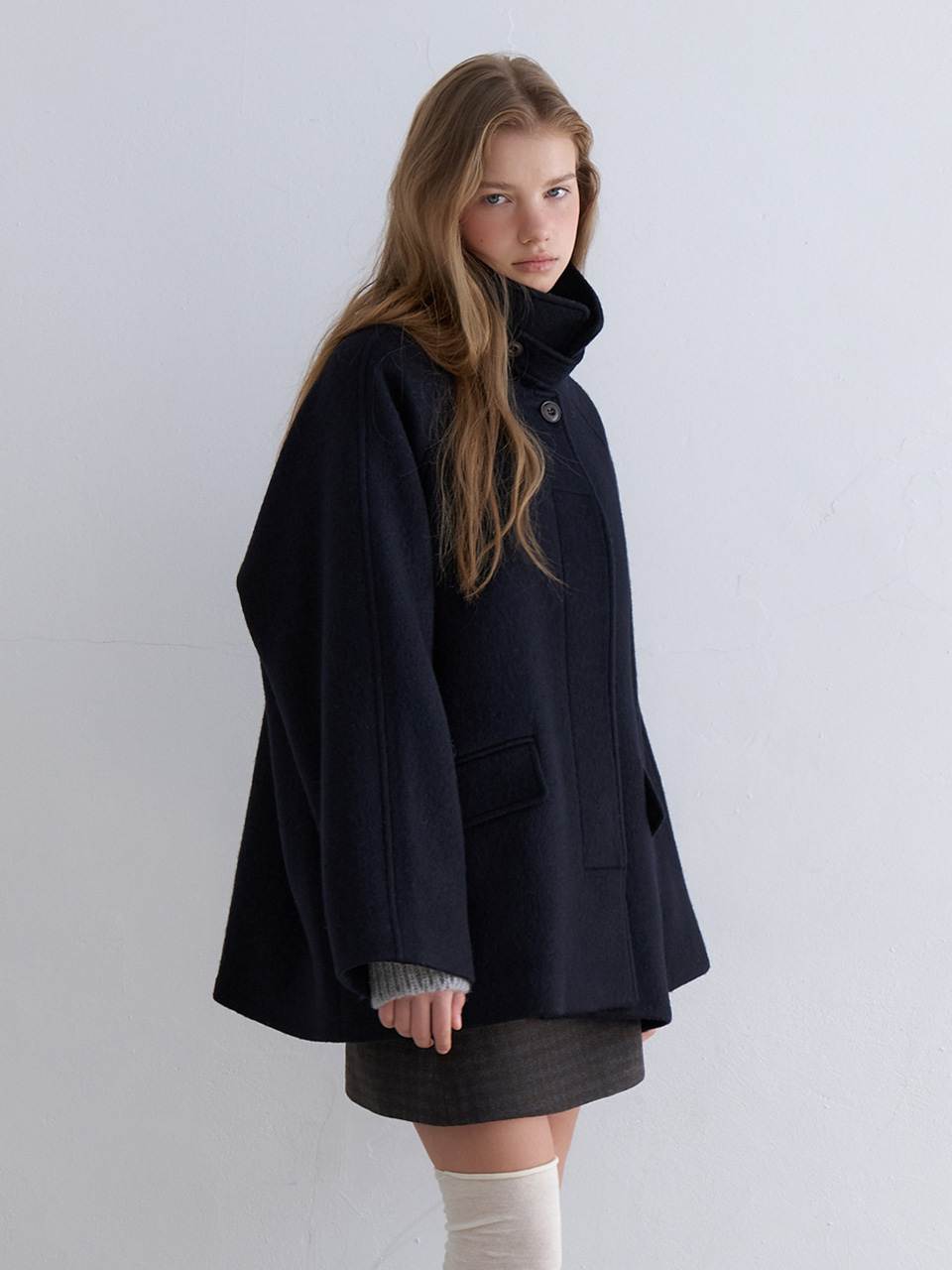Murmure Mare High-Neck Wool Half Coat Navy