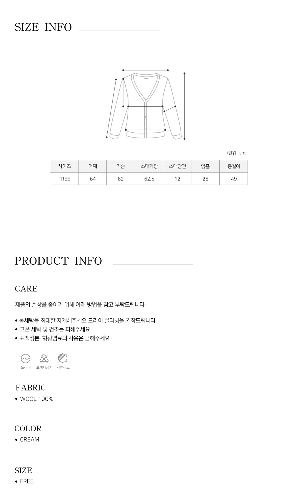 * 신축성O | 안감X | 두께감 두꺼움 (간절기/겨울) | 비침X