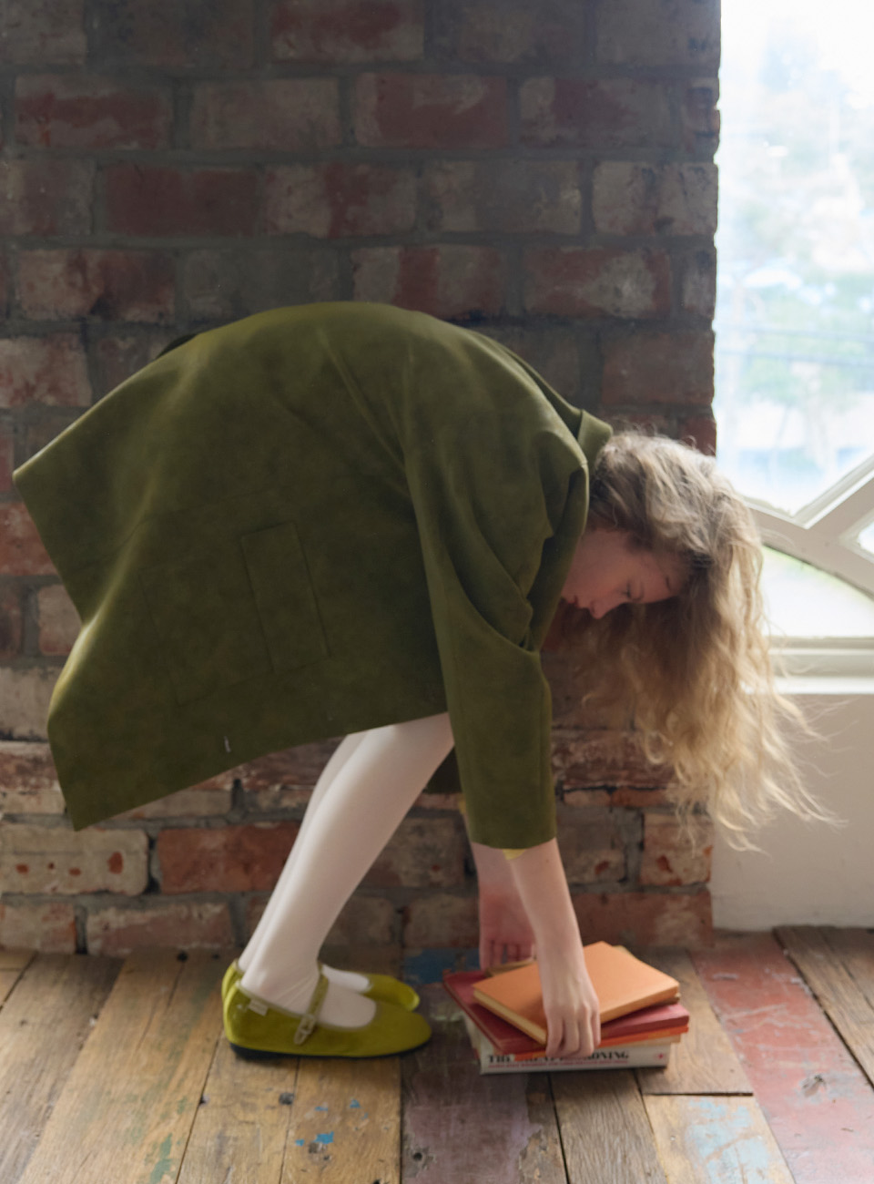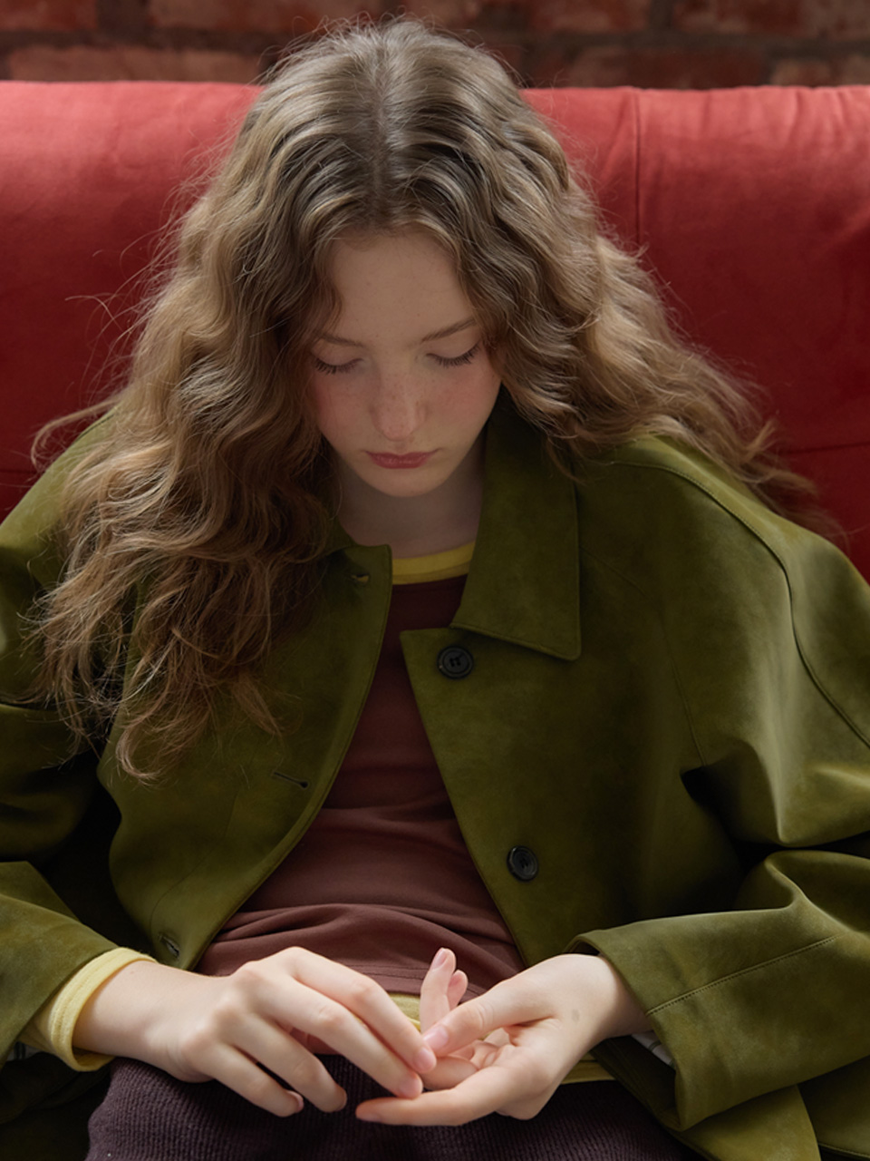 뮈르뮈르 덴버 스웨이드 하프 코트 올리브