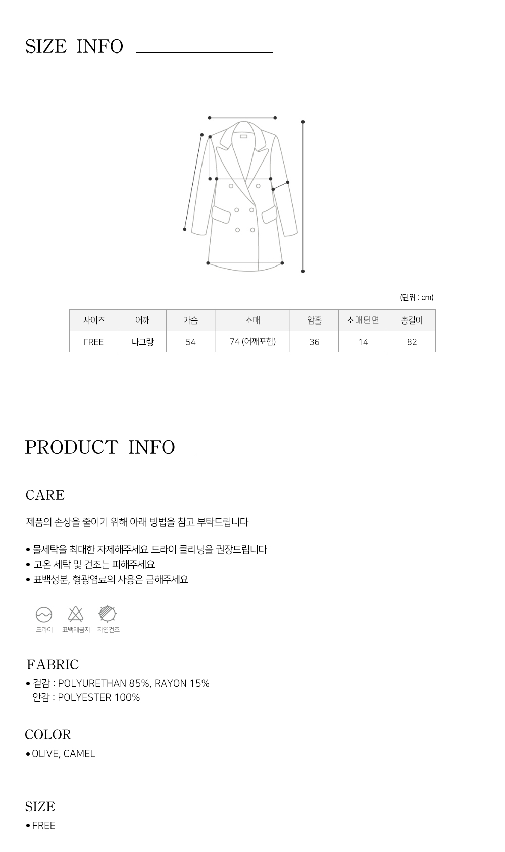 * 부드러운 스웨이드 원단 * 자연스러운 패턴이 매력적인 소재 * 하프 길이감에 여유있는 실루엣 * 레글런 어깨라인