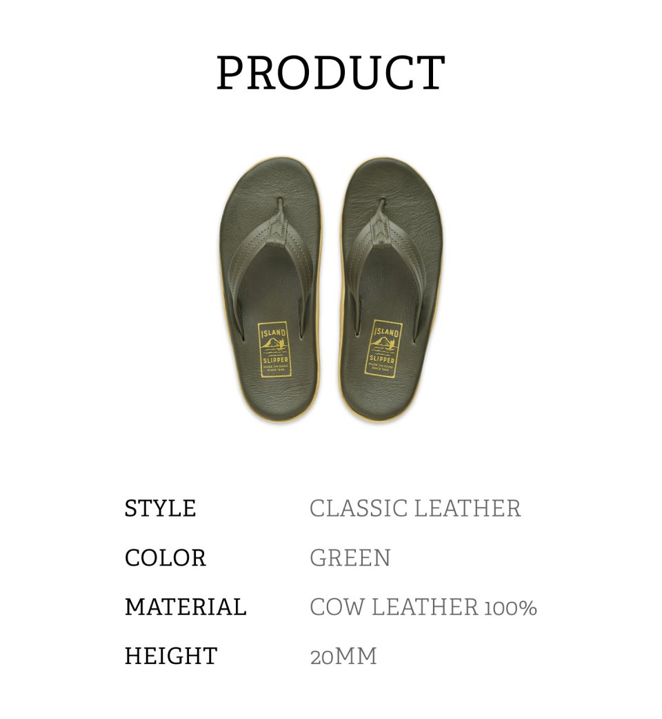 Island Slipper Unisex Green Classic Leather Y-Slide