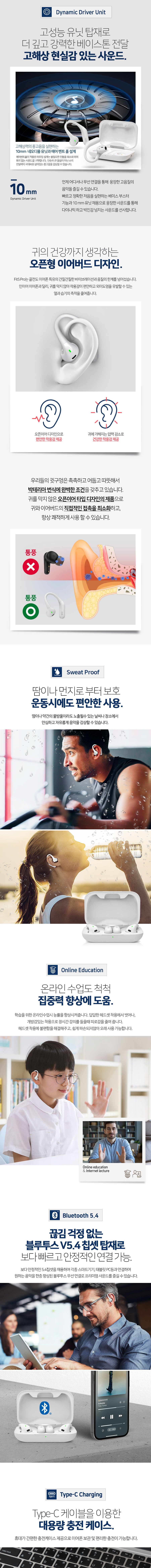 ## 1. 압도적인 착용감과 안전성 (Open-Ear Design) 이물감 제로: 귀 내부로 팁을 넣지 않는 방식이라 외이도염 걱정이 없으며, 장시간 착용해도 귀가 먹먹하거나 아프지 않습니다. 주변 상황 인지: 러닝이나 라이딩 중 뒤에서 오는 차 소리나 자전거 벨 소리를 즉각 들을 수 있어 사고 위험을 획기적으로 줄여줍니다. ## 2. 격렬한 움직임에도 단단한 고정 (Secure Ear-hook) 인체공학적 설계: 귀 뒤를 감싸는 유연한 이어훅 구조로 설계되었습니다. 전력 질주를 하거나 고강도 인터벌 트레이닝(HIIT)을 해도 흔들림 없이 안정적으로 고정됩니다. 초경량 8g: 한쪽 유닛당 약 8g의 가벼운 무게로, 운동 중 이어폰의 존재감을 거의 잊게 해줍니다.