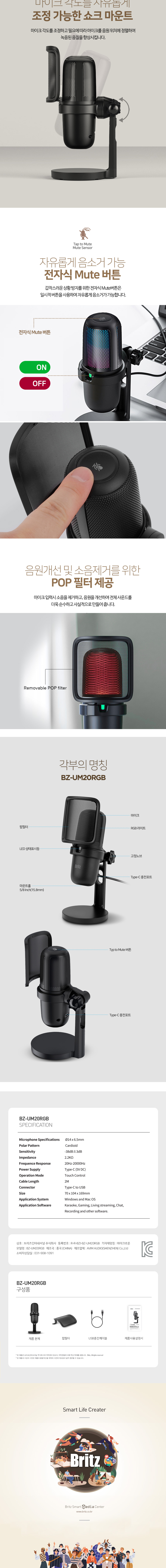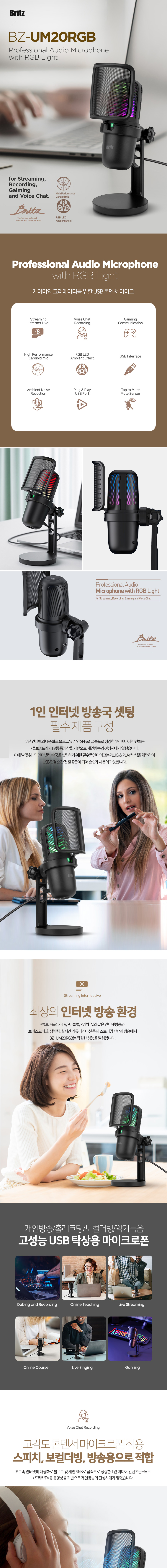 브리츠 USB 콘덴서 마이크 방송용 게임용 PC 유튜브 인강용 BZ-UM20RGB
