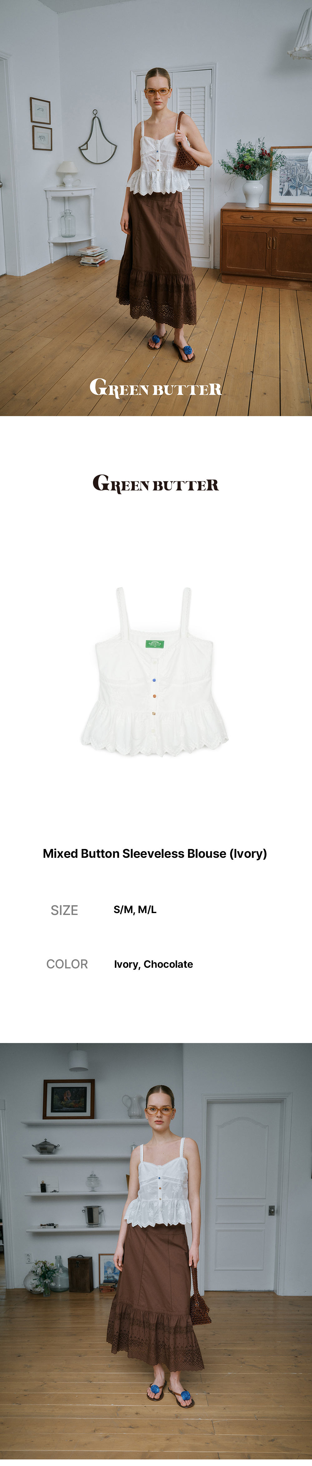 Greenbutter Mixed Button Sleeveless Blouse Ivory