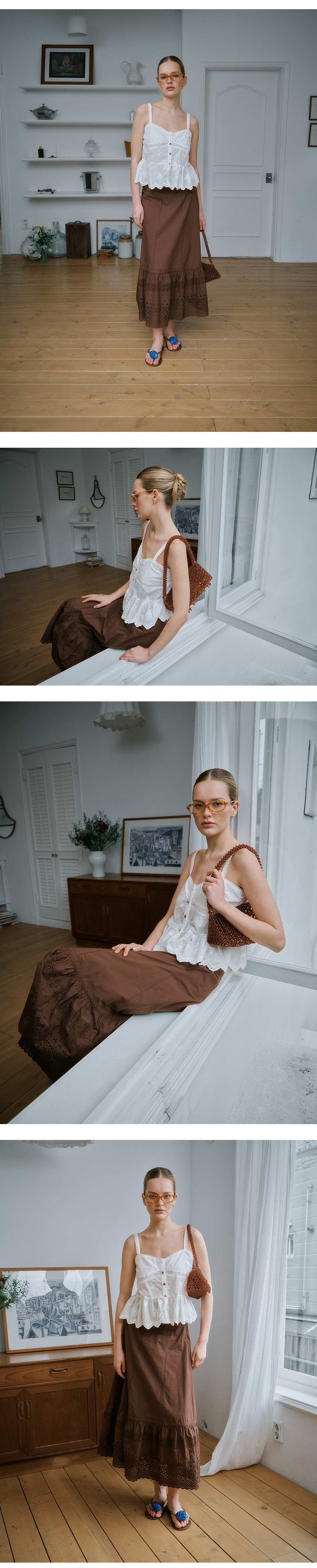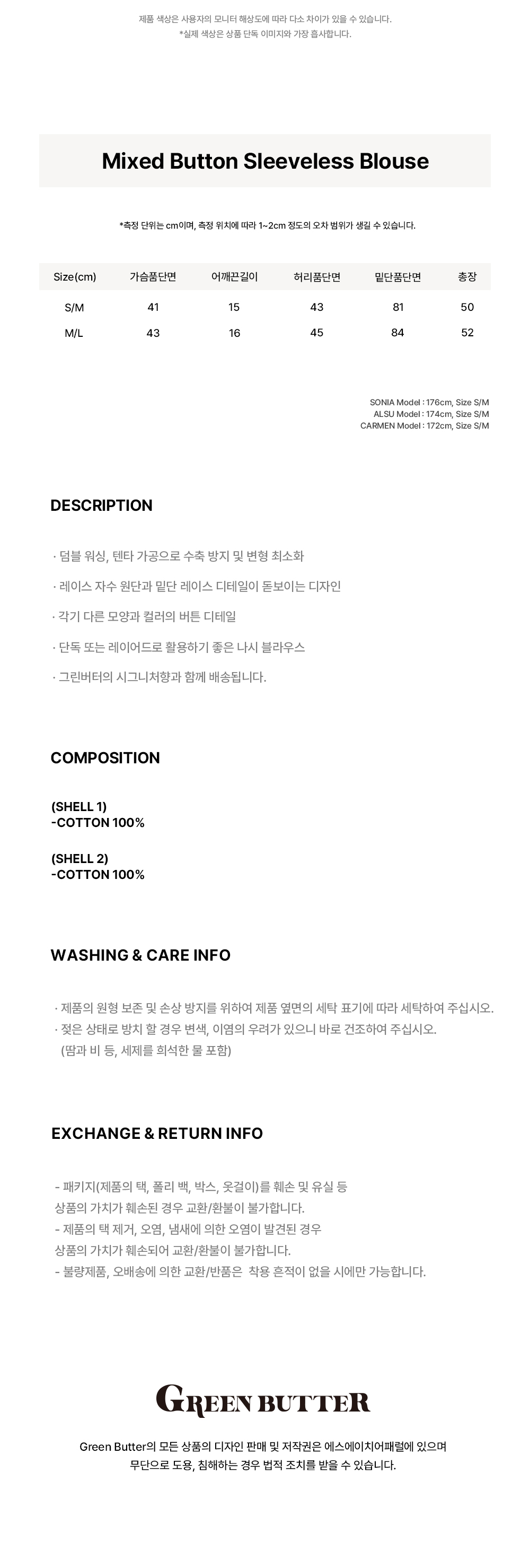 그린버터 믹스 버튼 슬리브리스 블라우스 아이보리