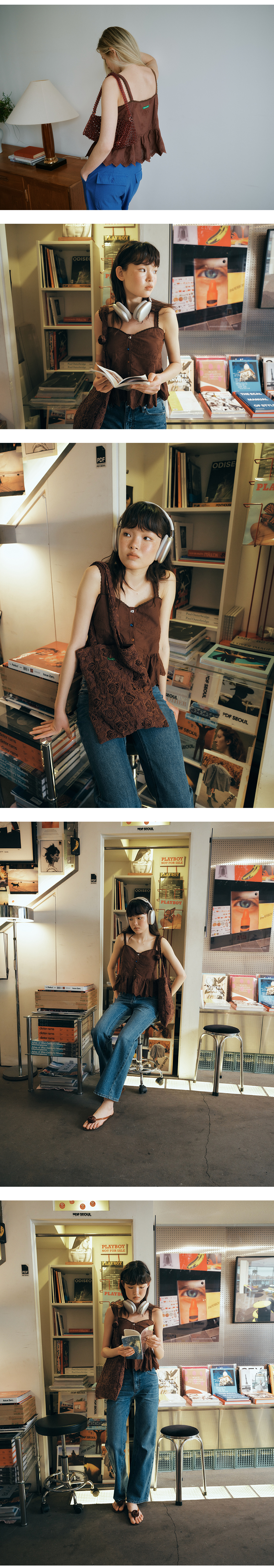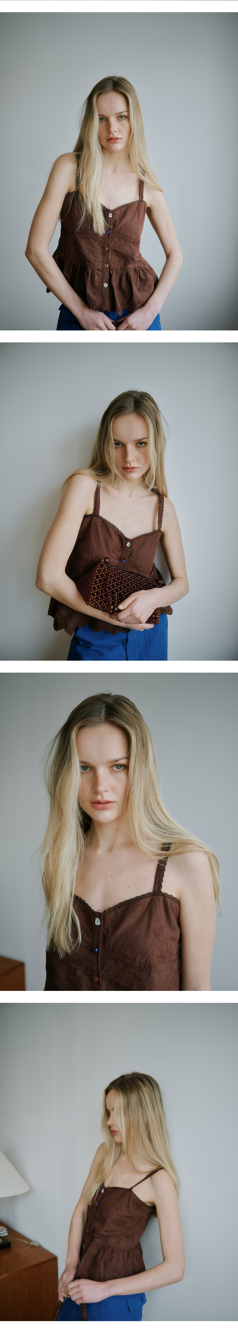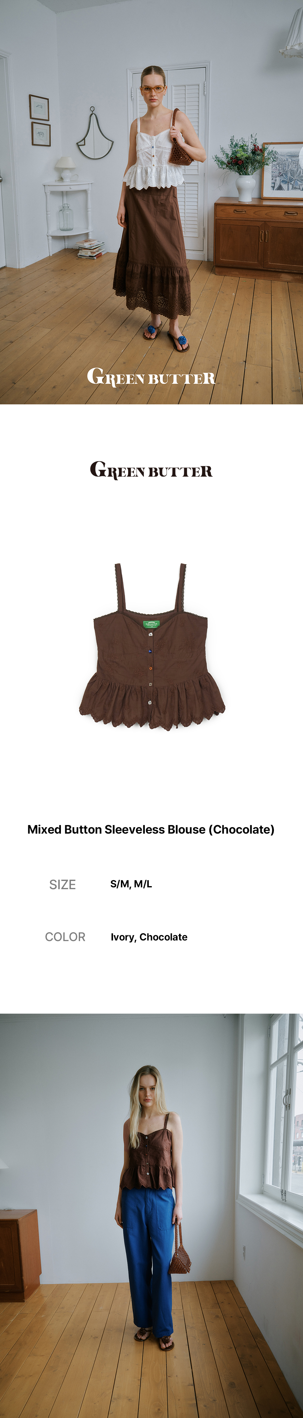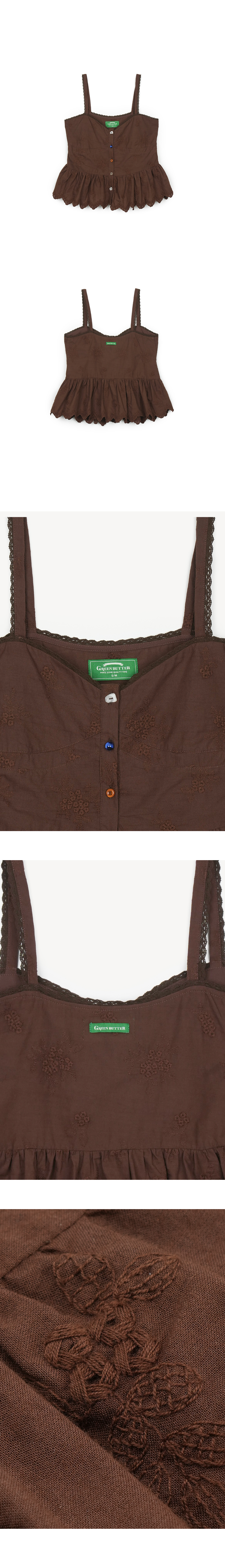 그린버터 믹스 버튼 슬리브리스 블라우스 초콜렛