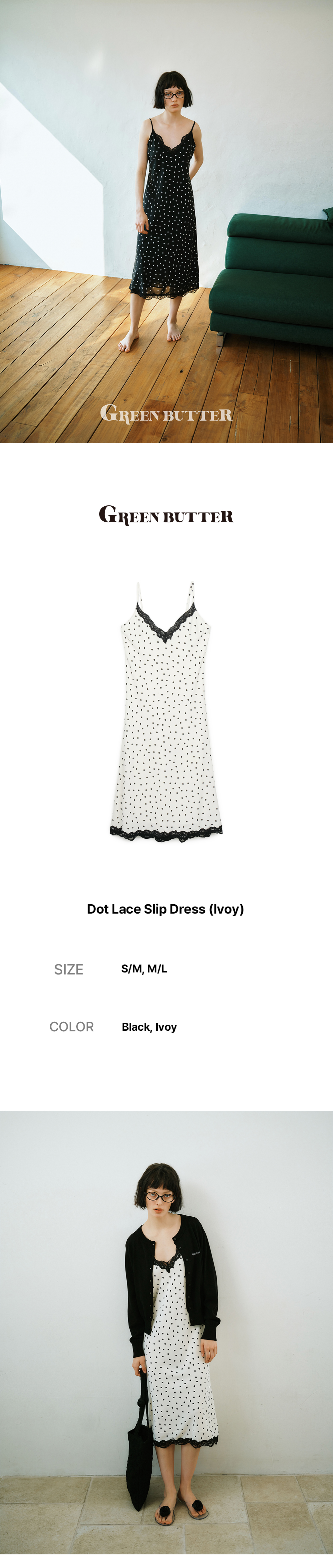 그린버터 도트 레이스 슬립 드레스 아이보리