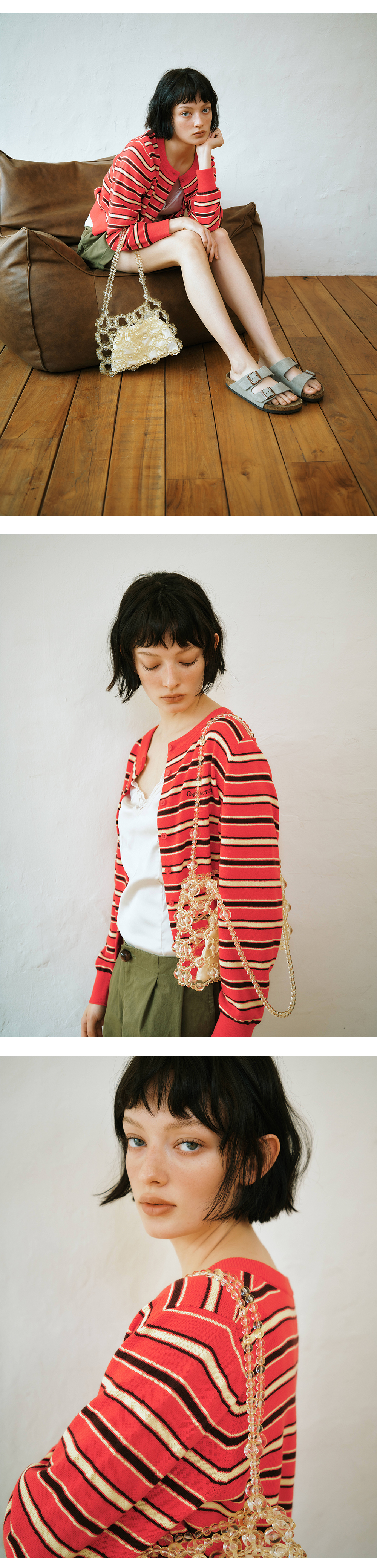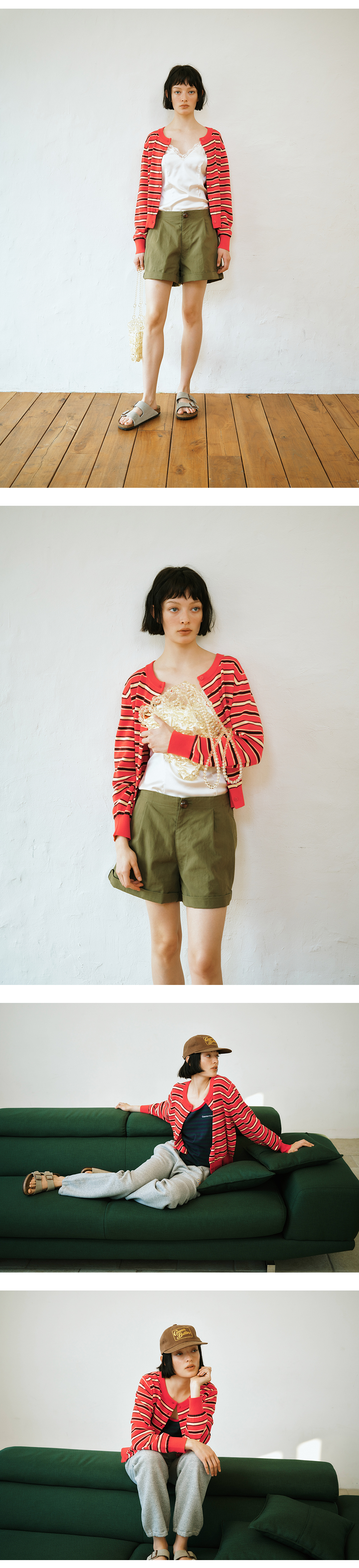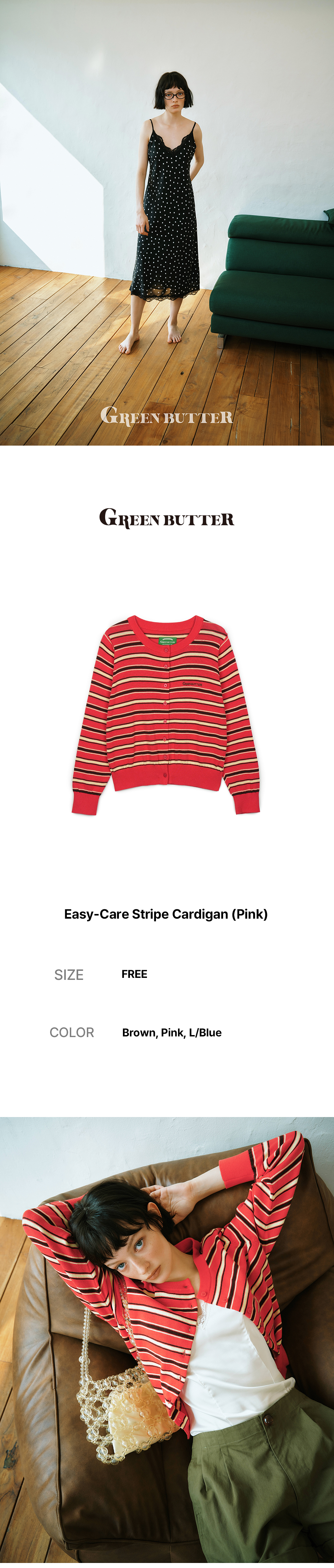 그린버터 이지케어 스트라이프 가디건 핑크