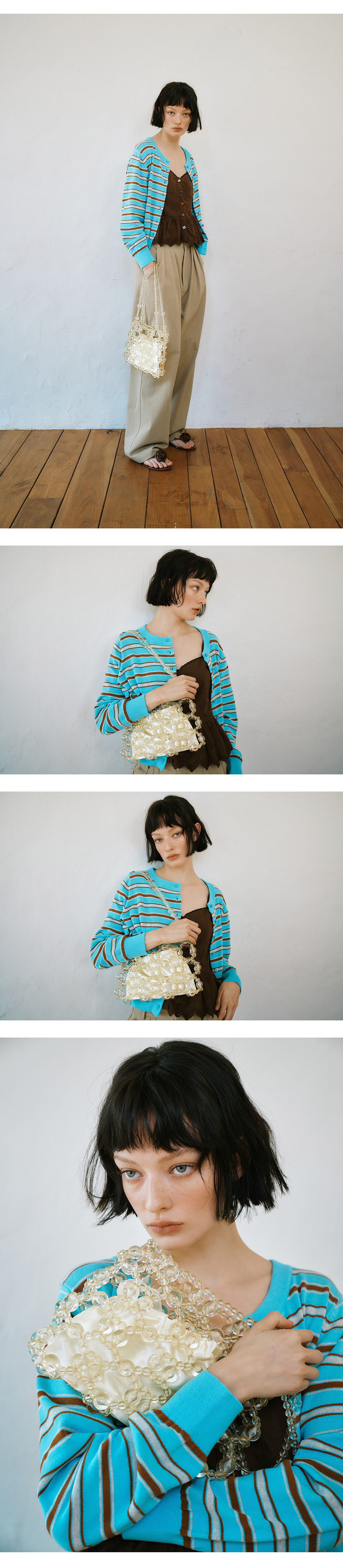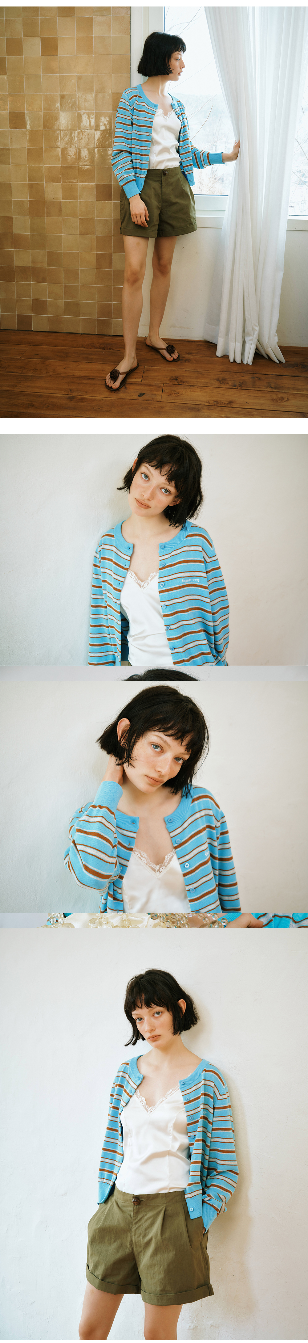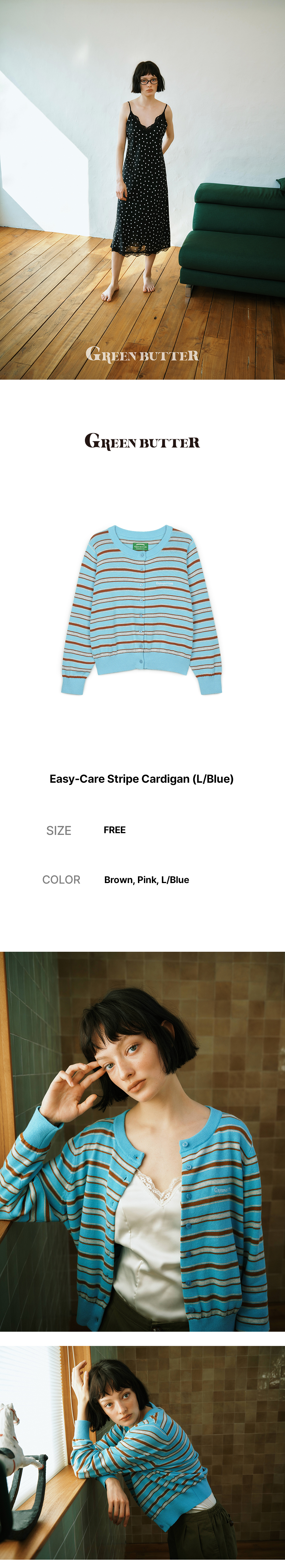 그린버터 이지케어 스트라이프 가디건 라이트블루
