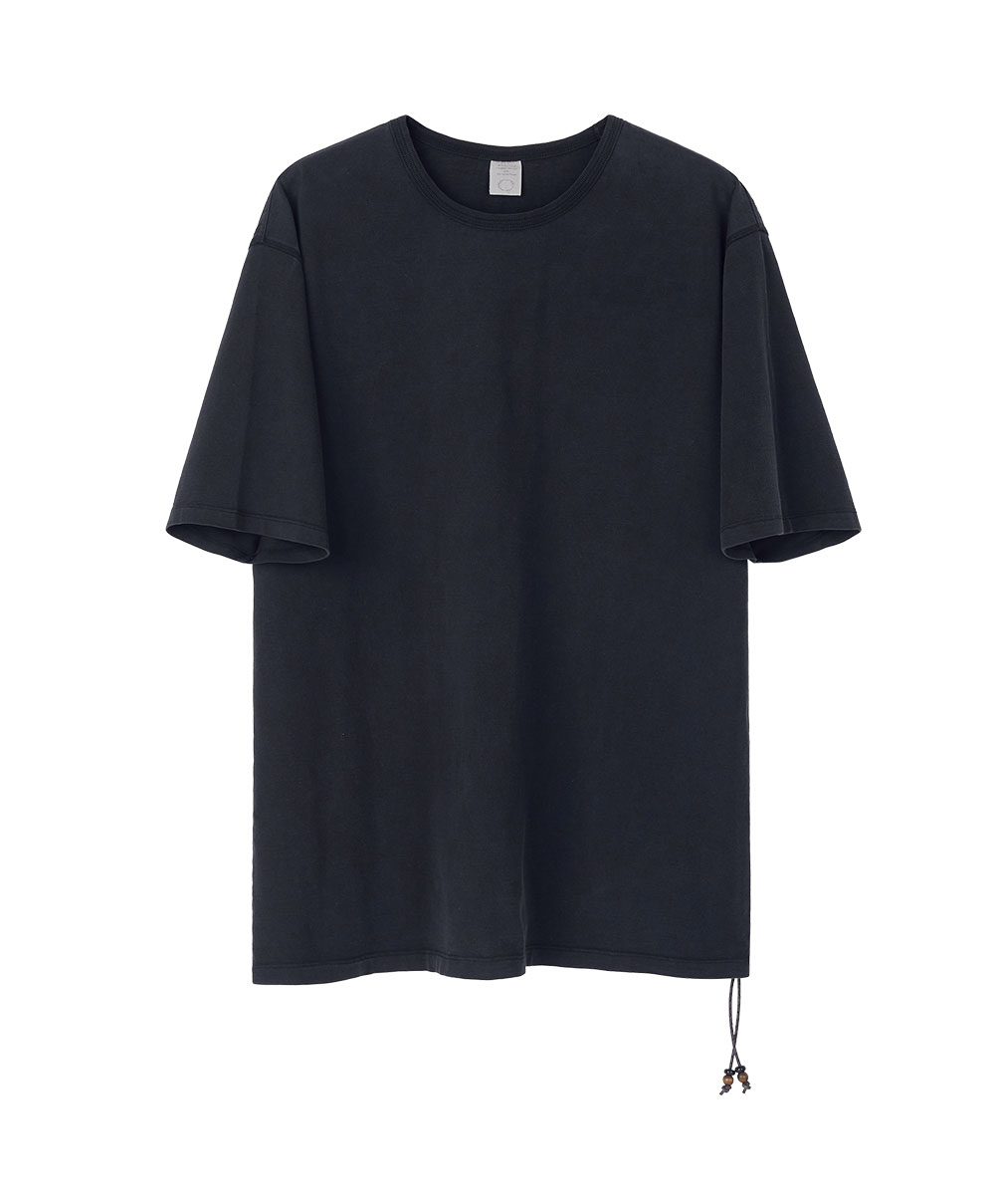 Onyx Vintage Tee (Washed Black) 빈티지한 색감과 불규칙한 워싱 이팩트가 매력적인 반소매 티셔츠입니다. 레귤러 핏의 티셔츠로 이너웨어로도 단독 착용으로도 활용도 높게 착용이 가능합니다. 티셔츠 밑단에 장식된 비즈 장식은 탈부착이 가능하여 다양하게 스타일링 할 수 있습니다. 스톤워싱 공정을 통해 빈티지한 색감과 자연스러운 텍스처를 살린 반팔 티셔츠입니다. 워싱 과정의 특성상 원단 표면에 미세한 구멍, 스크래치, 색상 차이가 발생할 수 있으며, 이는 불량이 아닌 제품 고유의 빈티지한 디테일입니다. 각 제품마다 워싱 정도와 디테일이 조금씩 다르게 표현되므로, 구매 시 이 점 참고 부탁드립니다. SPECIFICATION - Cotton 100% - 레귤러 핏 반소매 - 스톤워싱으로 빈티지한 컬러 - 소가죽 키링 부착 - 천연 오닉스와 자작 나무 비즈 - 바인딩 넥으로 늘어남을 최소화 179cm, 63kg / L size 179cm, 58kg / L size