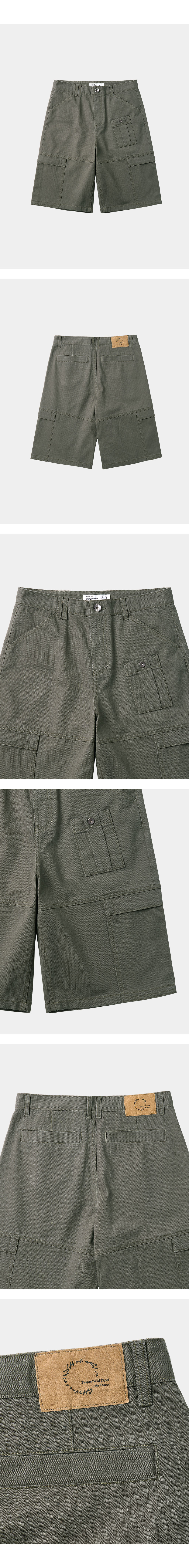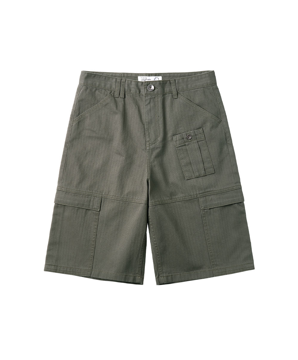 조우 패널 카고 포켓 헤링본 트윌 쇼츠 워시드 카키