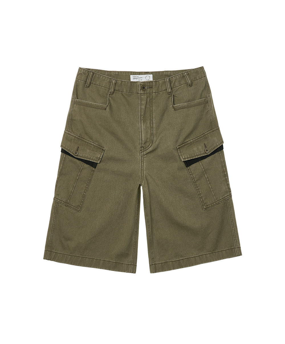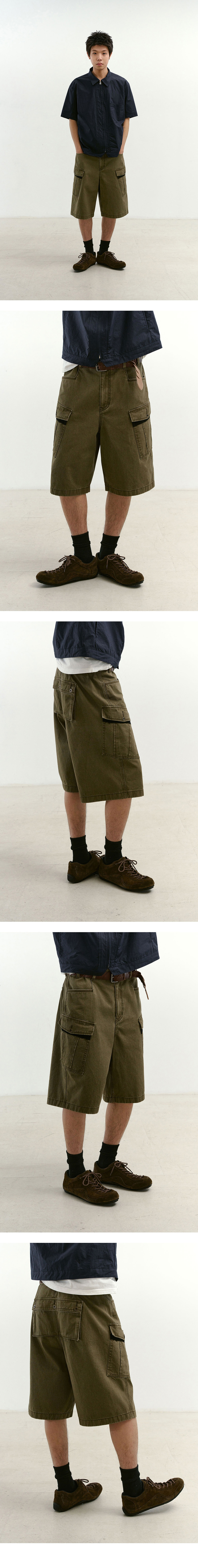 Monkey Pockets Cargo Shorts (Washed Khaki) P-44 팬츠를 재해석한 하프 팬츠로, 후면 몽키 포켓 디테일이 특징입니다. 9oz 면 100% 원단에 스톤 바이오 워싱을 통해 자연스러운 색감과 질감을 표현했습니다. 무오비 디테일과 양 옆 카고 포켓 구성으로 밀리터리 기반의 구조감을 살렸습니다. 빈티지한 무드의 캐스팅 단추 사용으로 포인트를 주었습니다. SPECIFICATION - Cotton 100% -9oz 코튼 원단 - 스톤 바이오 워싱 - 무오비 디테일 - 사이드 카고 포켓 - 후면 몽키 포켓 포인트 - 빈티지 무드 캐스팅 버튼 179cm, 58kg / 32 size