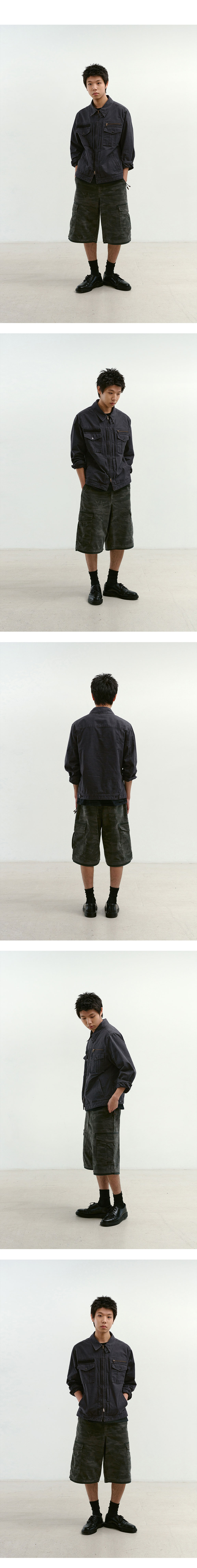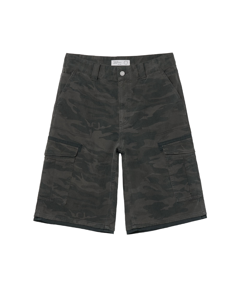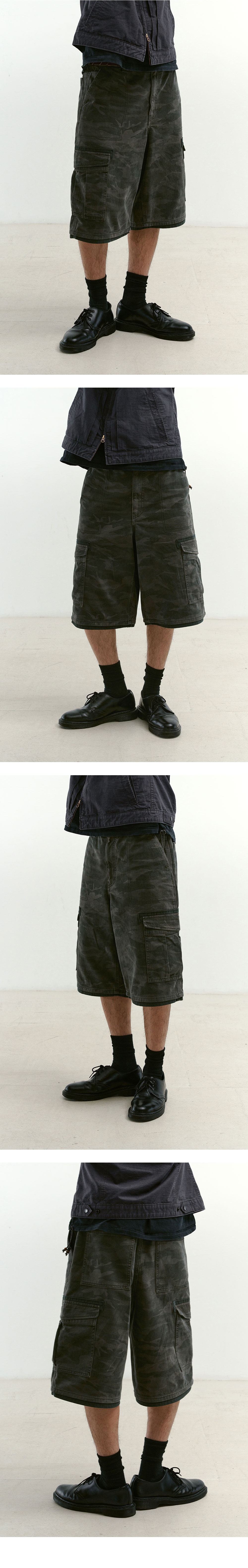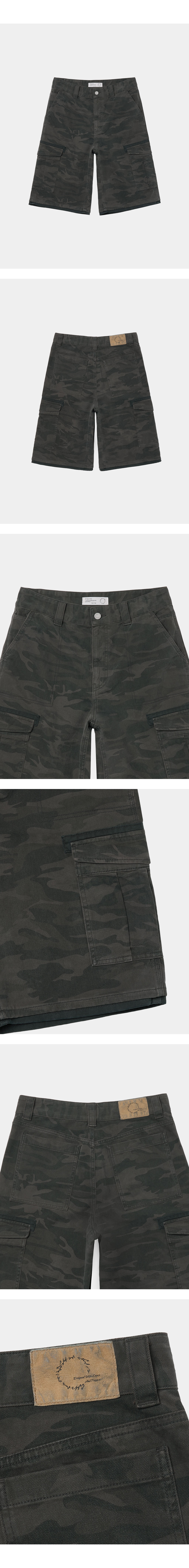 Camo Field Cargo Shorts (Washed Gray) 카모 패턴 원단에 워싱을 더해 과하지 않은 빈티지 무드를 표현한 하프 팬츠입니다. 사각 플리츠 디테일의 포켓과 슬래시 포켓으로 착용 시툭 떨어지는 깔끔한 실루엣을 볼 수 있습니다. 차분한 컬러 톤으로 다양한 상의와 부담 없이 매치하기 좋습니다. SPECIFICATION - Cotton 100% - 카모 패턴·배색 디테일 - 카고 쇼츠 실루엣 오마주 - 사각 플리츠 포켓 - 슬래시 포켓 - 스톤 워싱 가공 179cm, 58kg / 32 size