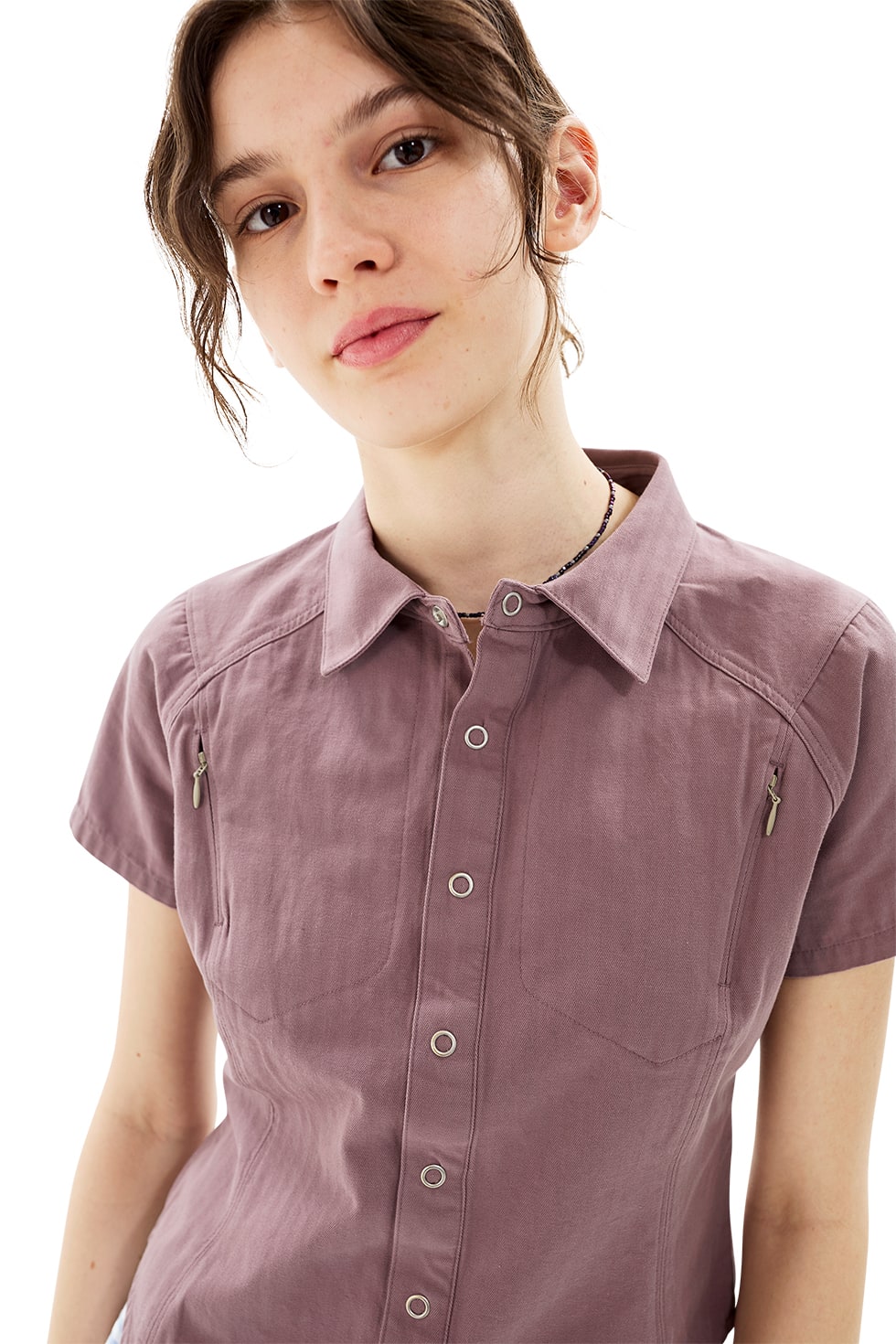 [트리플적립]SUNLOVE W Wave Herringbone Shirt Rose