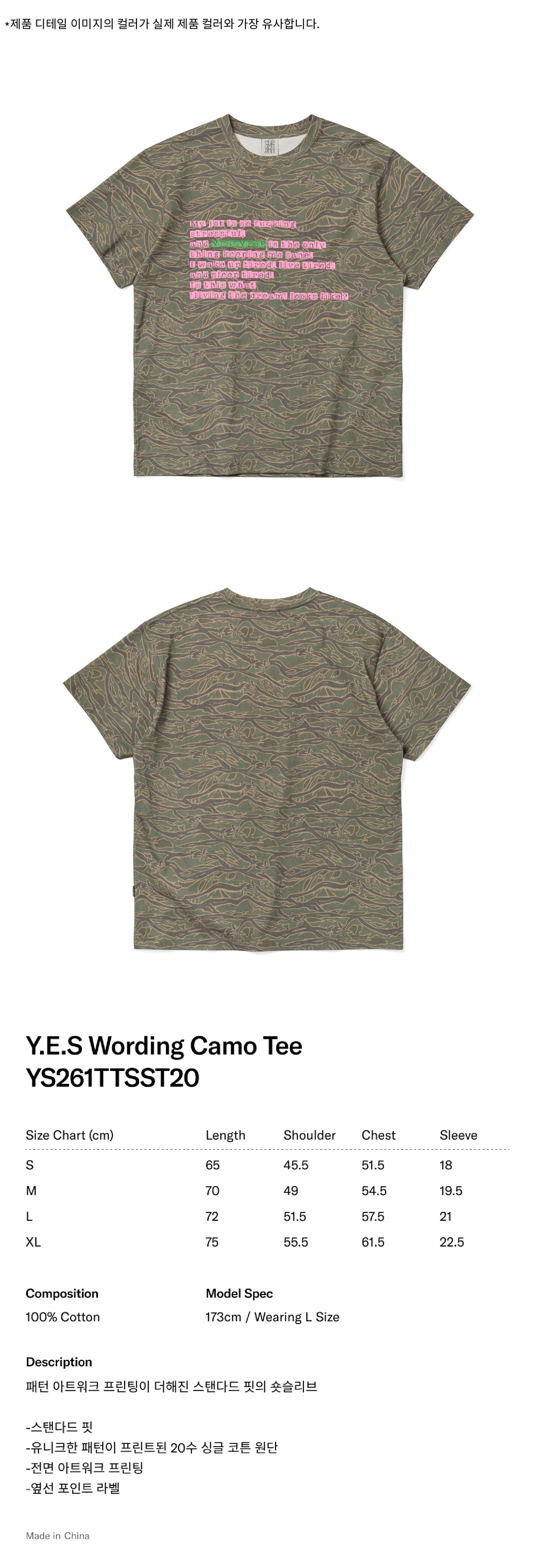 [더블적립]YESEYESEE Y.E.S Wording Camo Tee Khaki