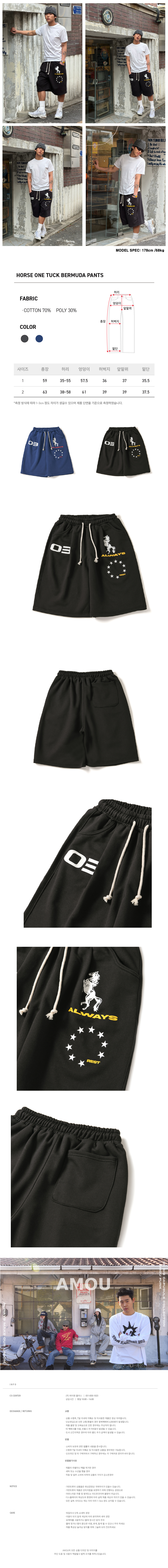 아모우 홀스 원턱 버뮤다 팬츠 블랙