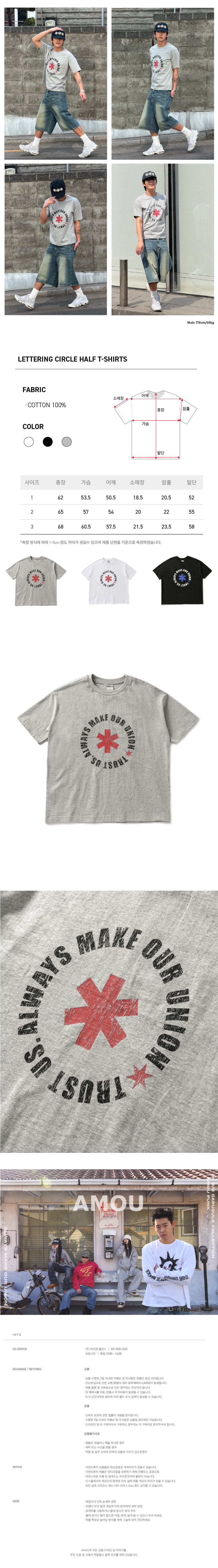 아모우 레터링 서클 하프 티셔츠 그레이