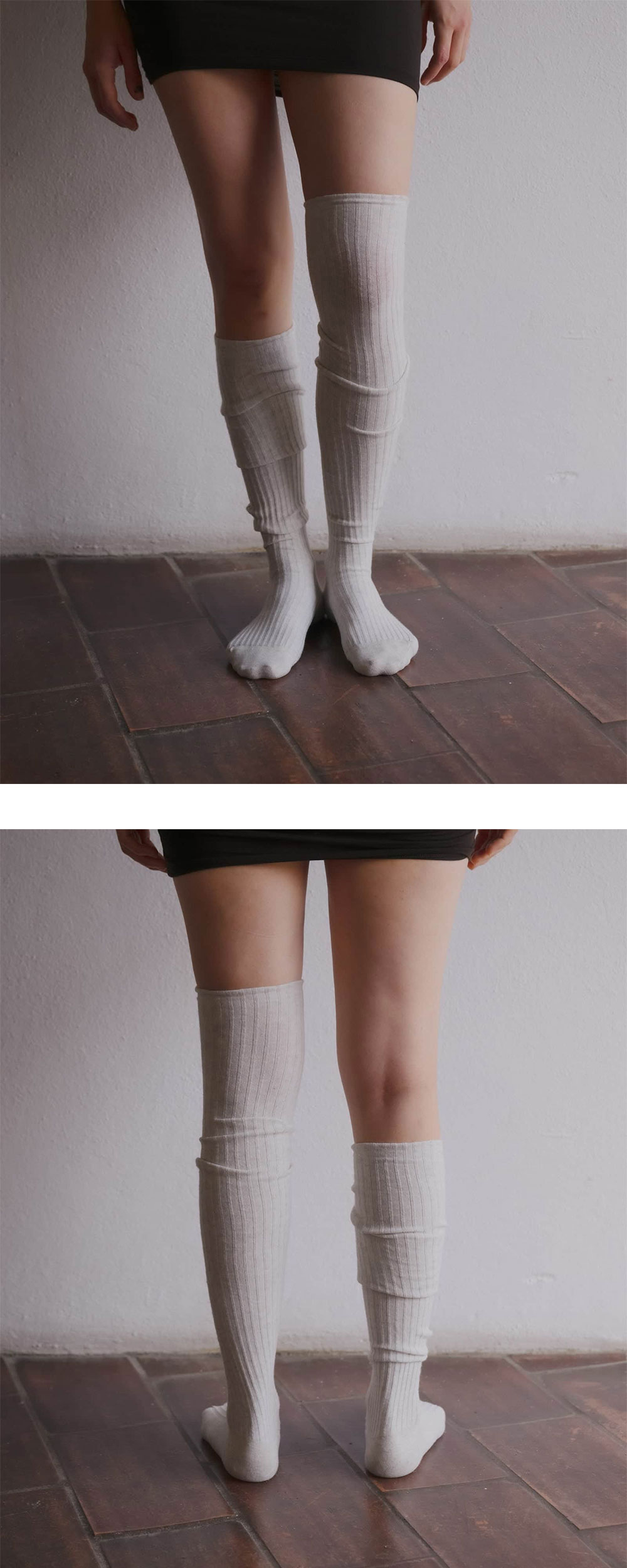 베이스레인지 우먼 오버니 삭스 그레이 멜란지 입니다. - 무릎 위를 덮는 롱한 기장감의 오버니(Over-the-knee) 삭스 - 신축성 있는 골지(리브) 짜임으로 흘러내림 방지 및 편안한 피팅감 제공 - 여러 가지 색실이 섞여 내추럴하고 따뜻한 느낌을 주는 그레이 멜란지 컬러 - 끝단을 접거나 자연스럽게 내려 신는 등 다양한 연출 가능