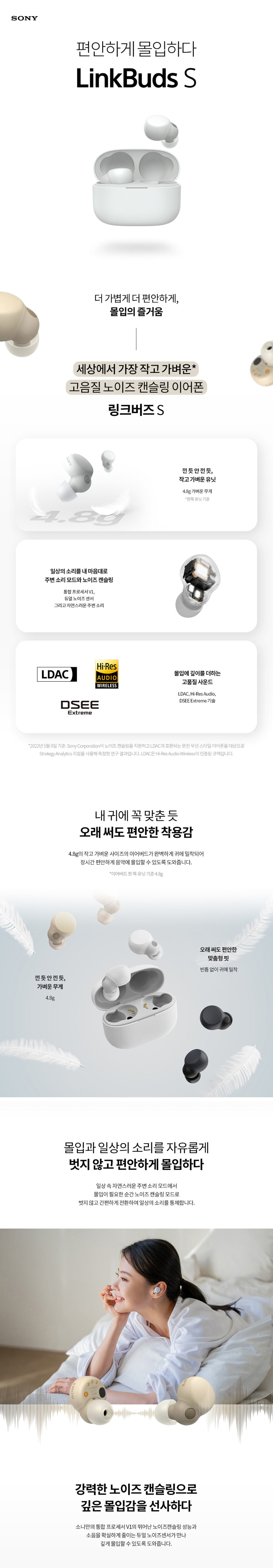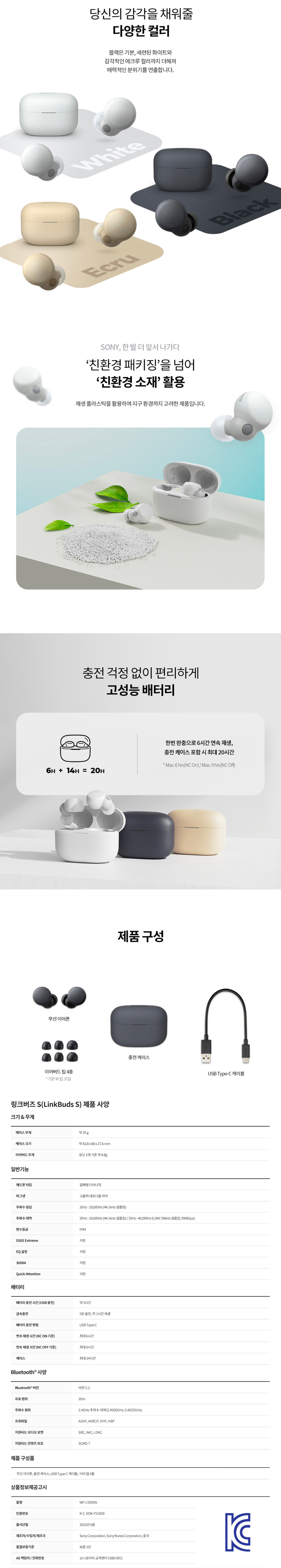 소니 링크버즈 S 에크루 (소니코리아 정식 발매 제품)