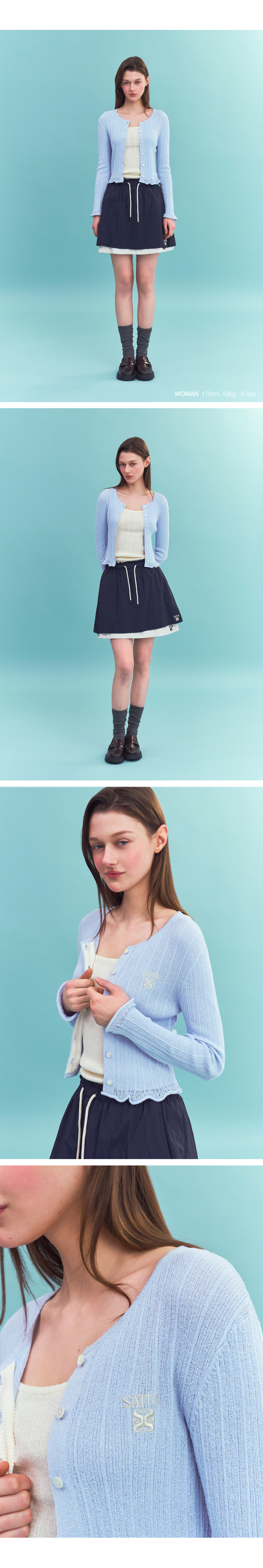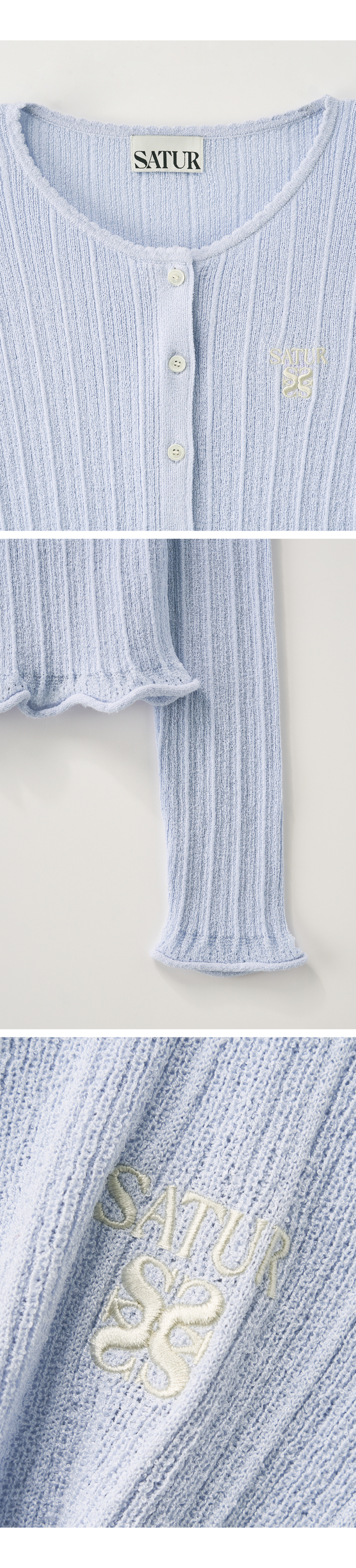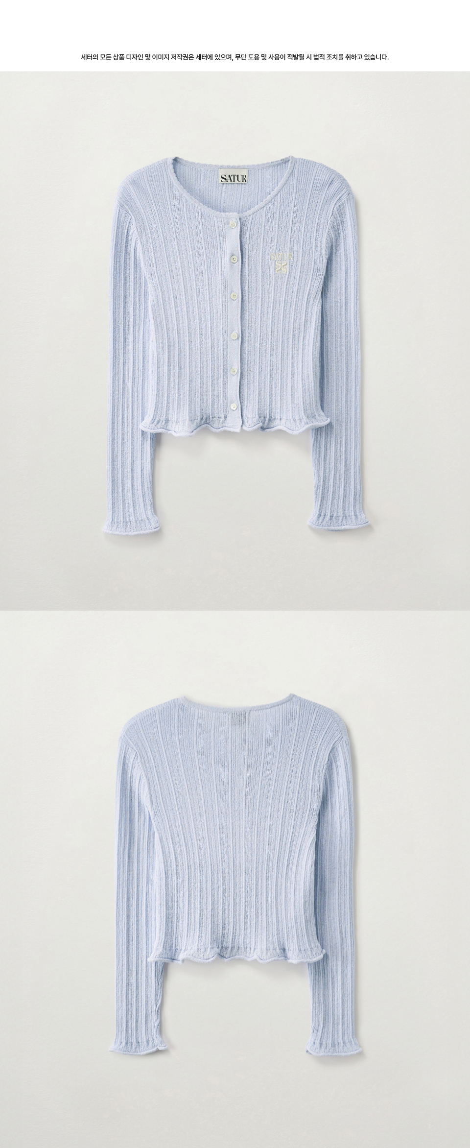 세터 우먼 시어 롱 슬리브 크롭 가디건 스카이 블루