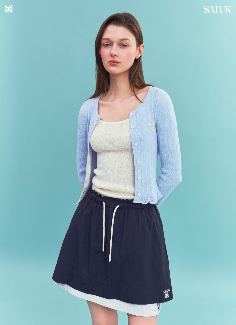 SATUR W Sheer Long Sleeve Crop Cardigan Sky Blue