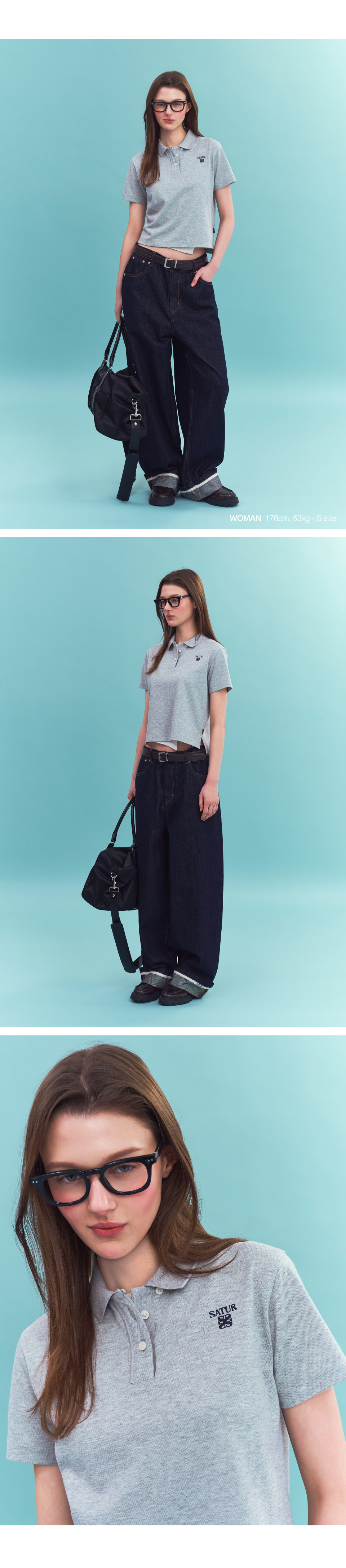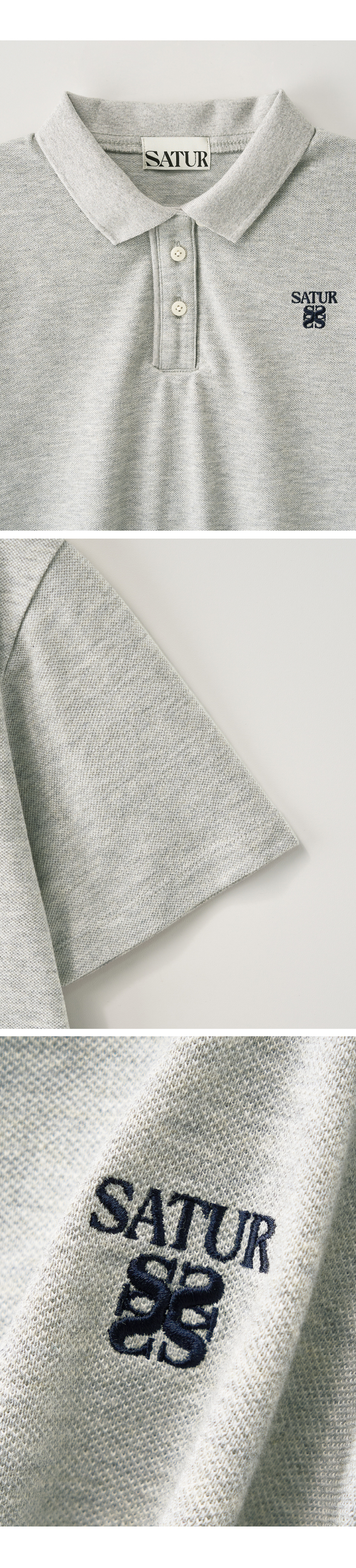 SATUR W Loren Pique Polo T-Shirt Melange Gray