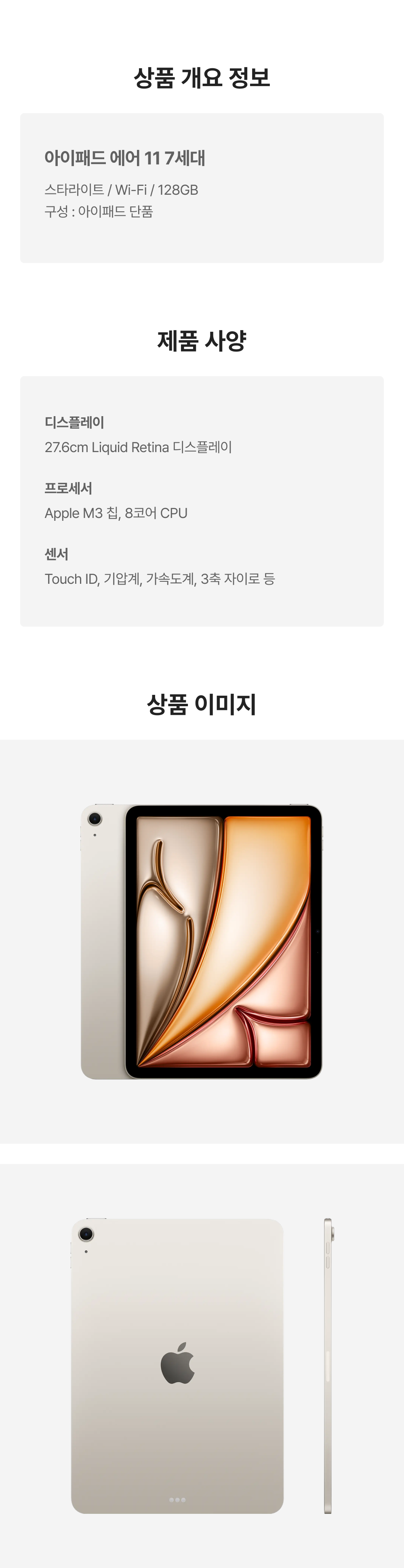 [S등급] 리퍼비시 아이패드 에어 11 7세대 wifi Apple M3 128기가 스타라이트