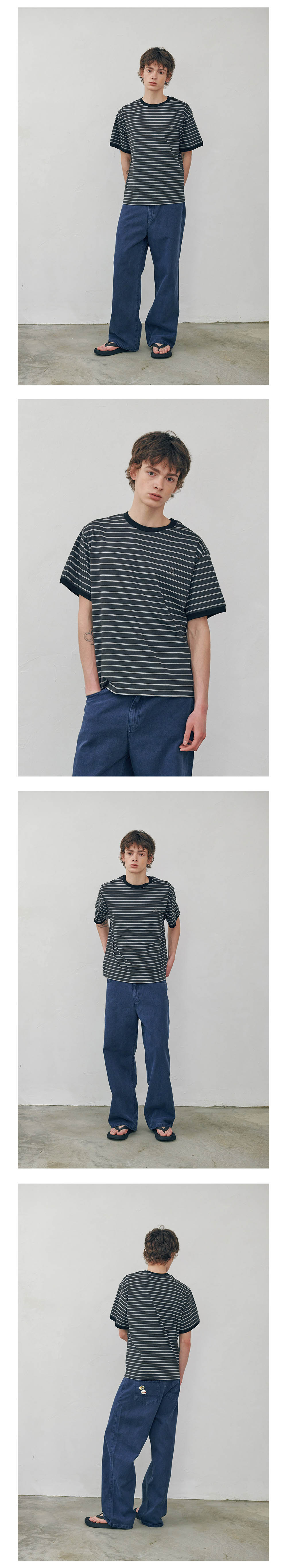 플랫웨이브 인 서울 로마 스트라이프 링거 티셔츠 차콜