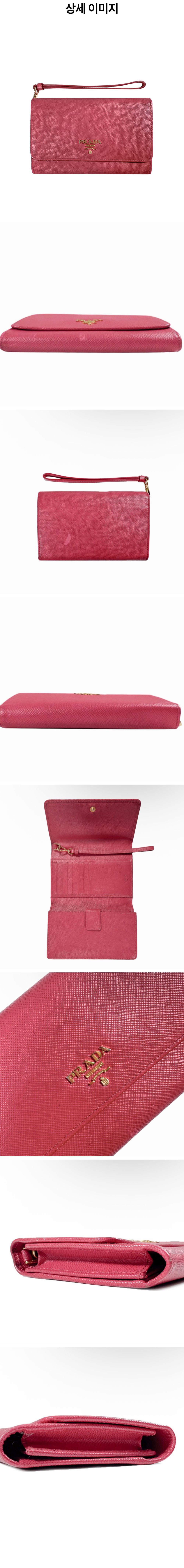 프라다 여성 사피아노 비텔로 레더 스트랩 지갑 미디움 핑크 1M1426