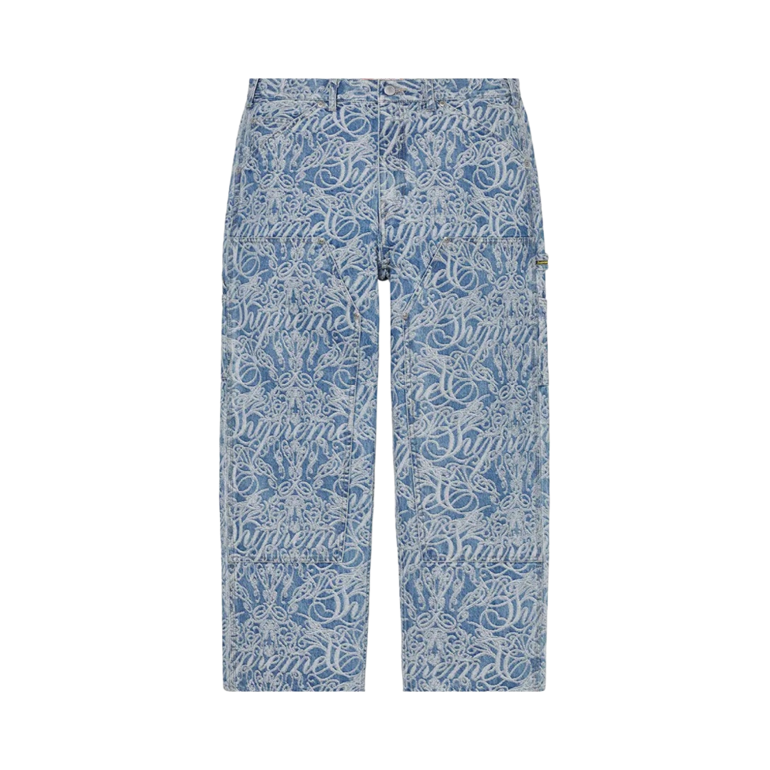 Supreme Script Jacquard Double Knee Denim Painter Pants Washed Blue - 22FW
