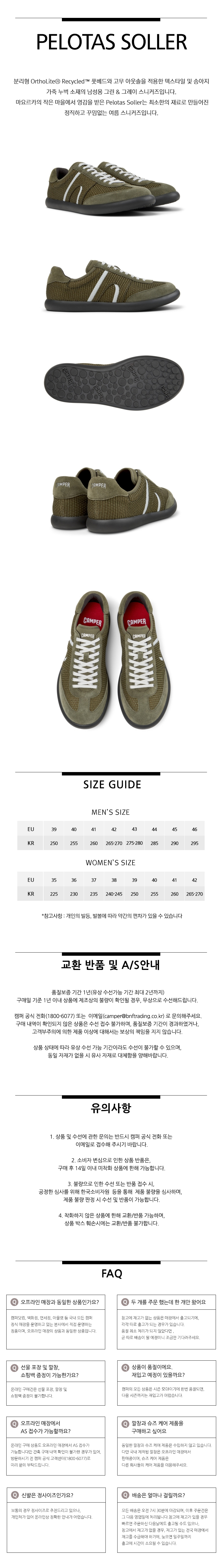 캠퍼 남성 펠로타스 솔라 스니커즈 카키