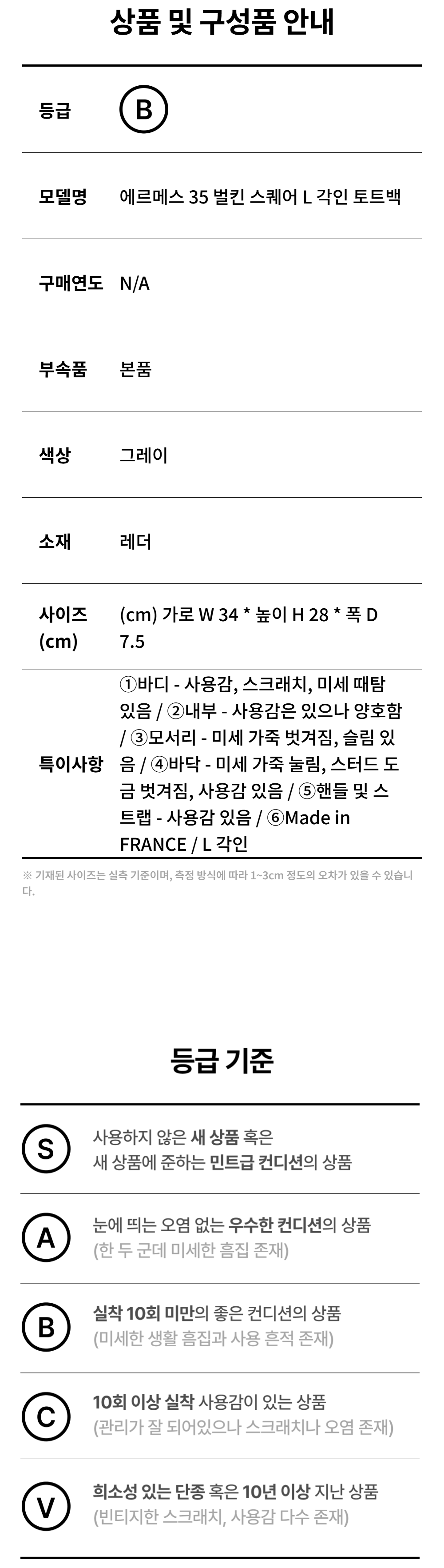에르메스 35 벌킨 스퀘어 L 각인 토트백 C-A51567