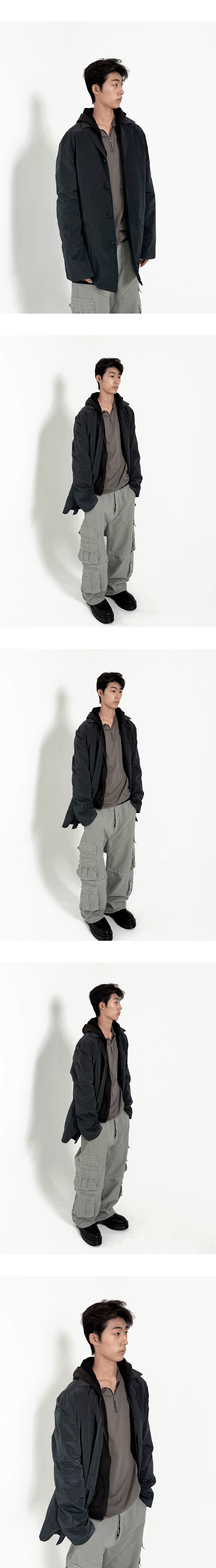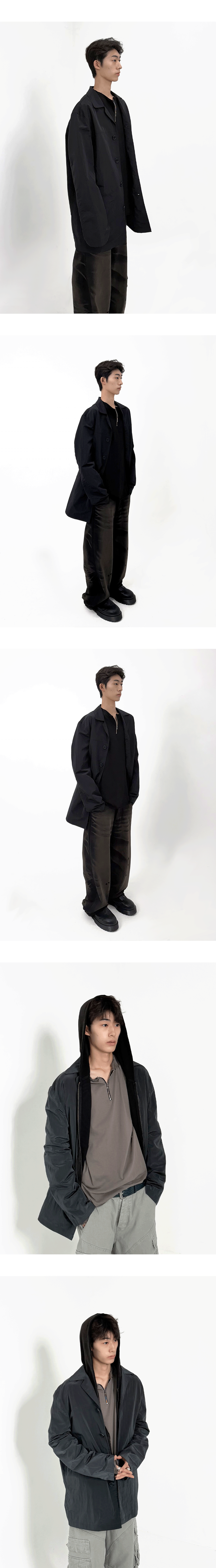 나일론 소재로 제작되어 가볍고 유연한 착용감을 제공하는 빈티지 무드의 블레이저 코트입니다. 자연스러운 구김과 텍스처로 은은한 사용감을 표현합니다. MODEL : 177CM / 59KG WEARING SIZE : 2