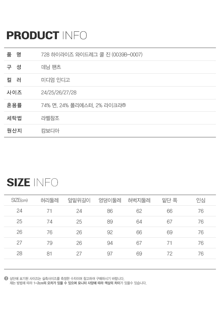 리바이스 728 하이라이즈 와이드레그 쿨 진 미디엄 인디고