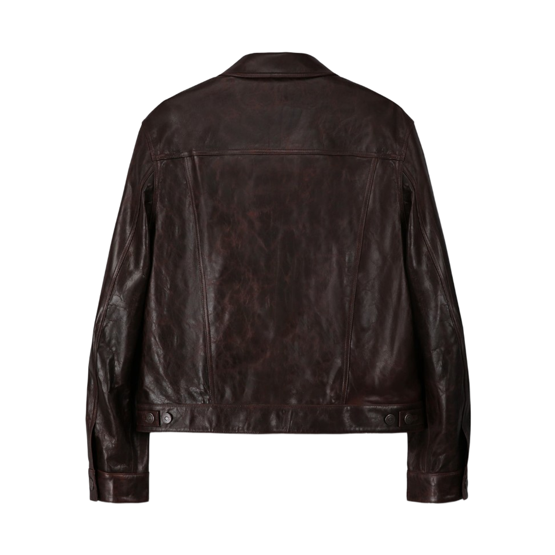 Tonywack Aged Lamb Leather Trucker Jacket Brown