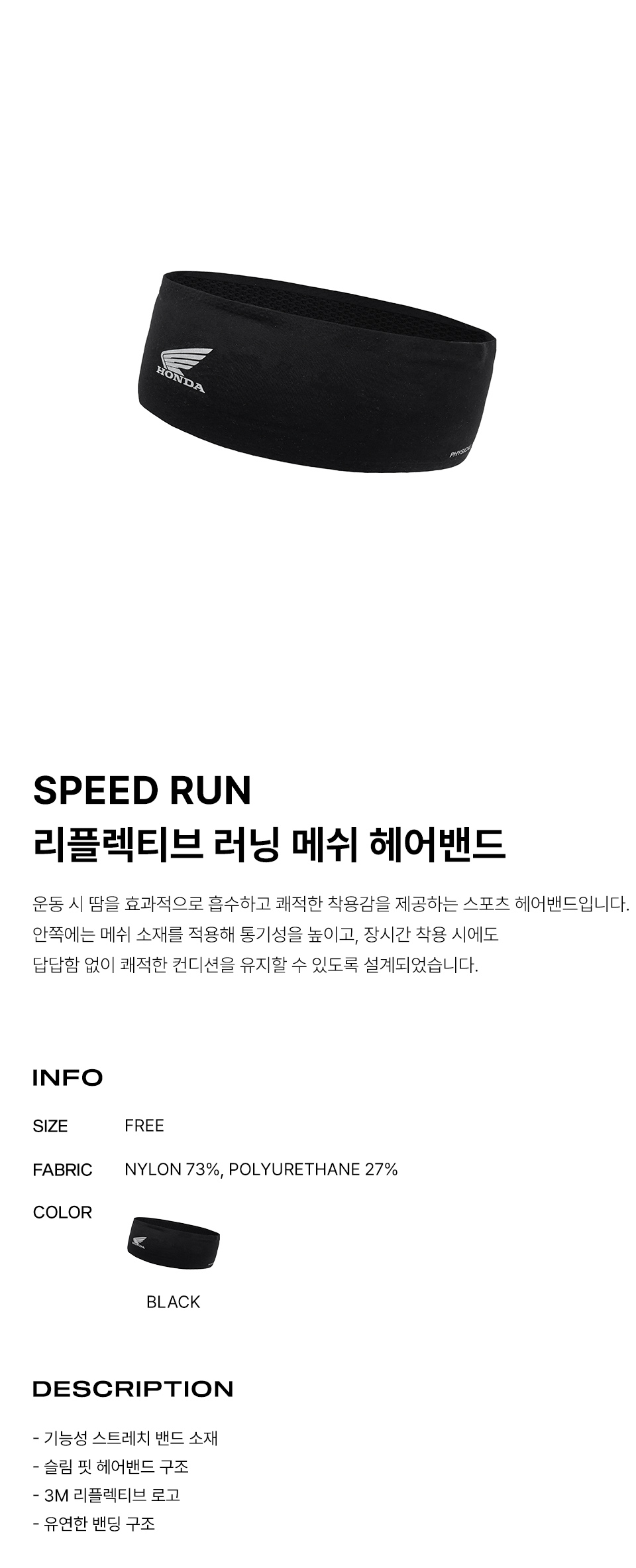 혼다 스피드 런 메쉬 헤어 밴드 블랙