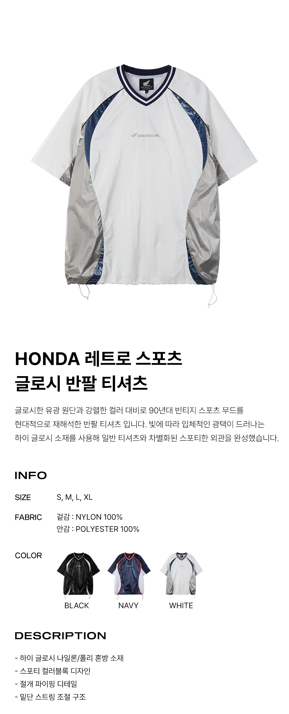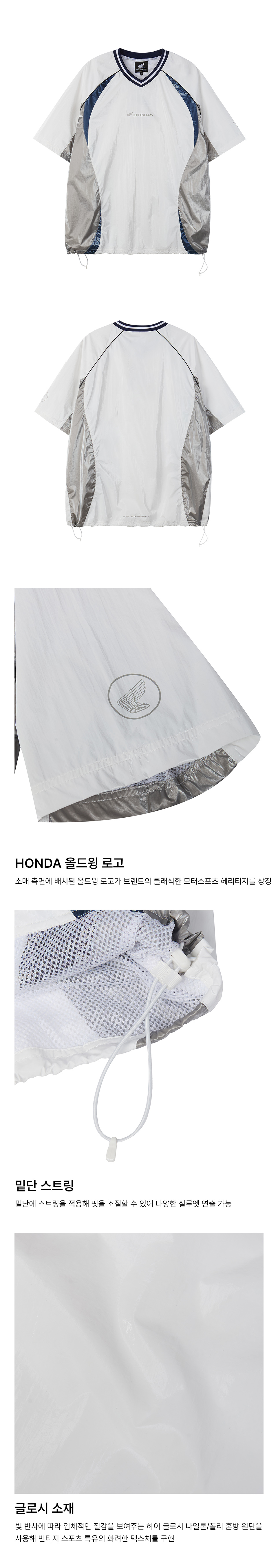 혼다 글로시 나일론 브이넥 반팔 티셔츠 화이트